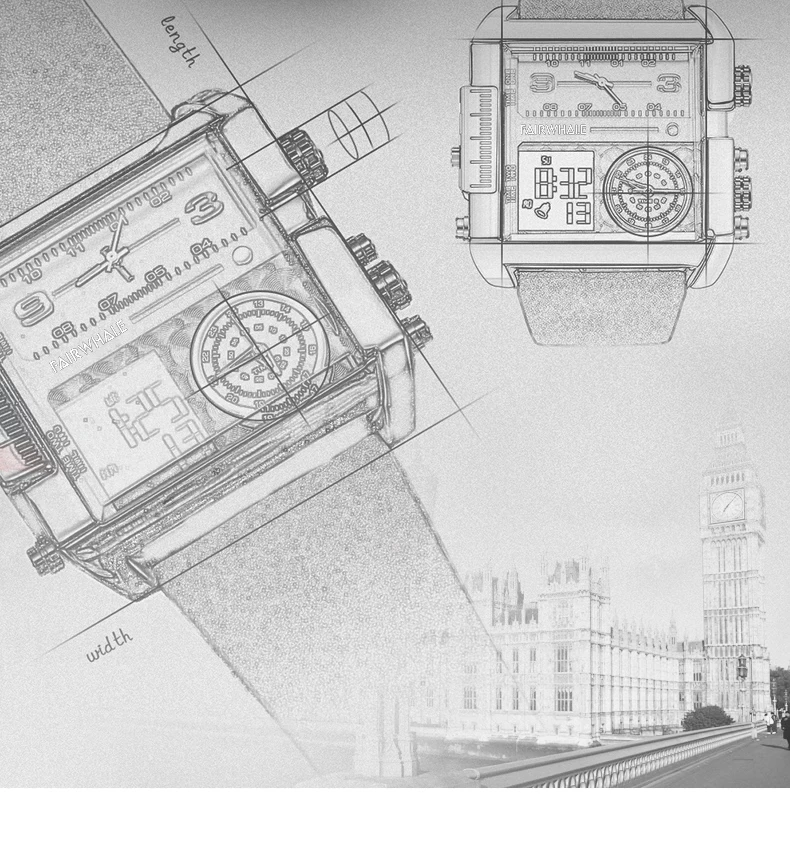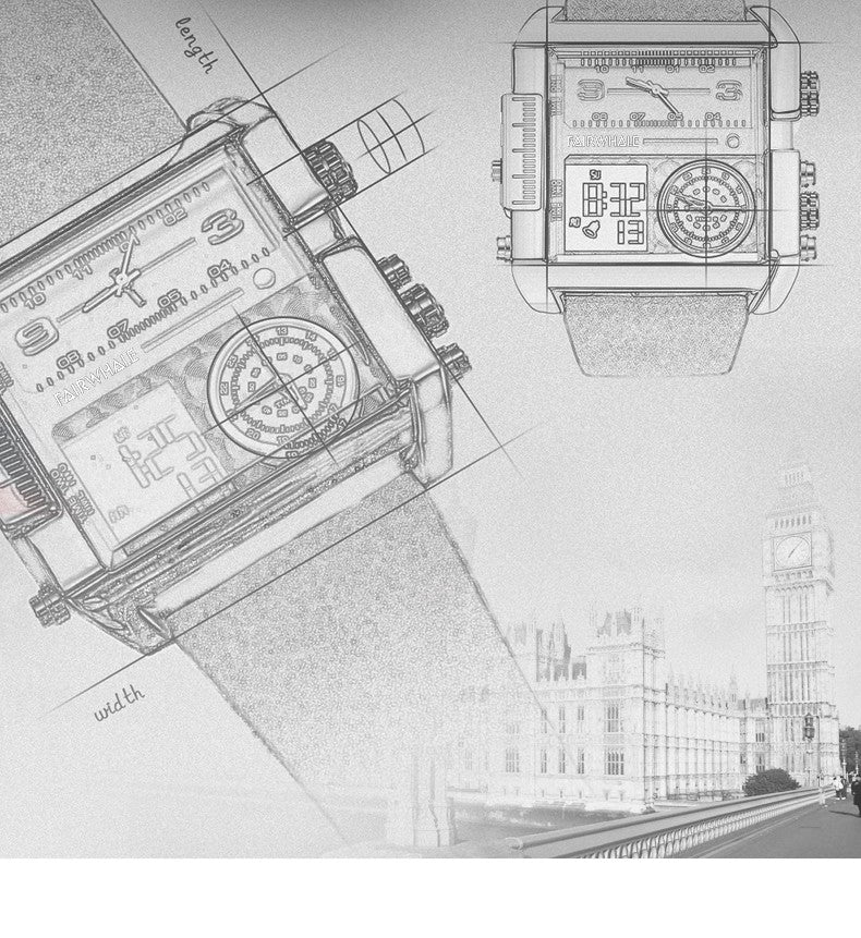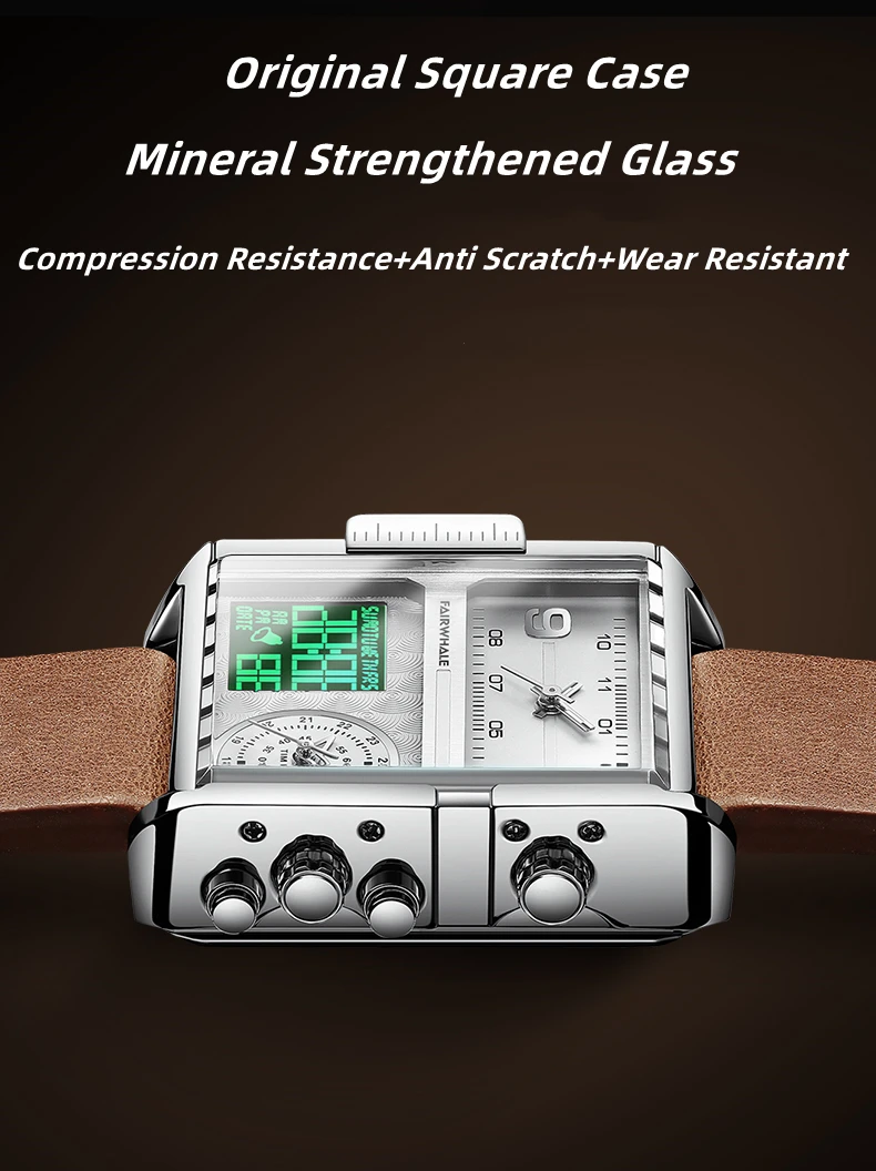 Mark Fairwhale Luxury Quartz Watches Men Fashion Brown Leather Strap Clock Military Waterproof Square Electronic WristWatch 2023
