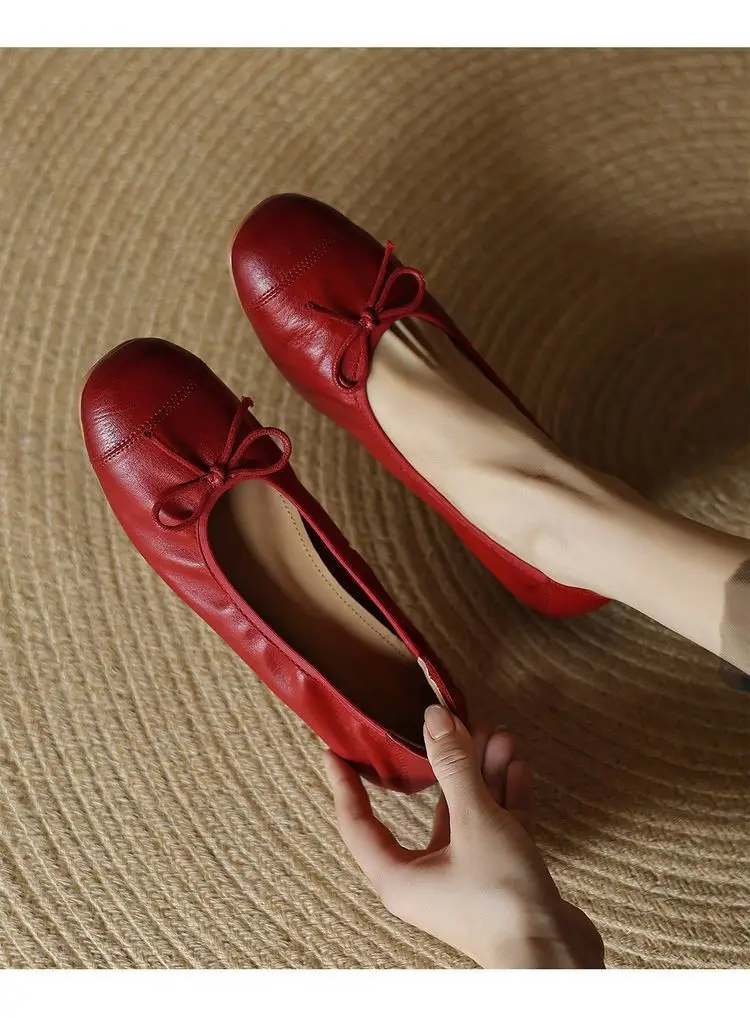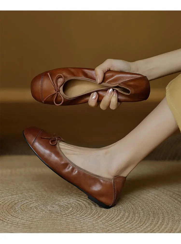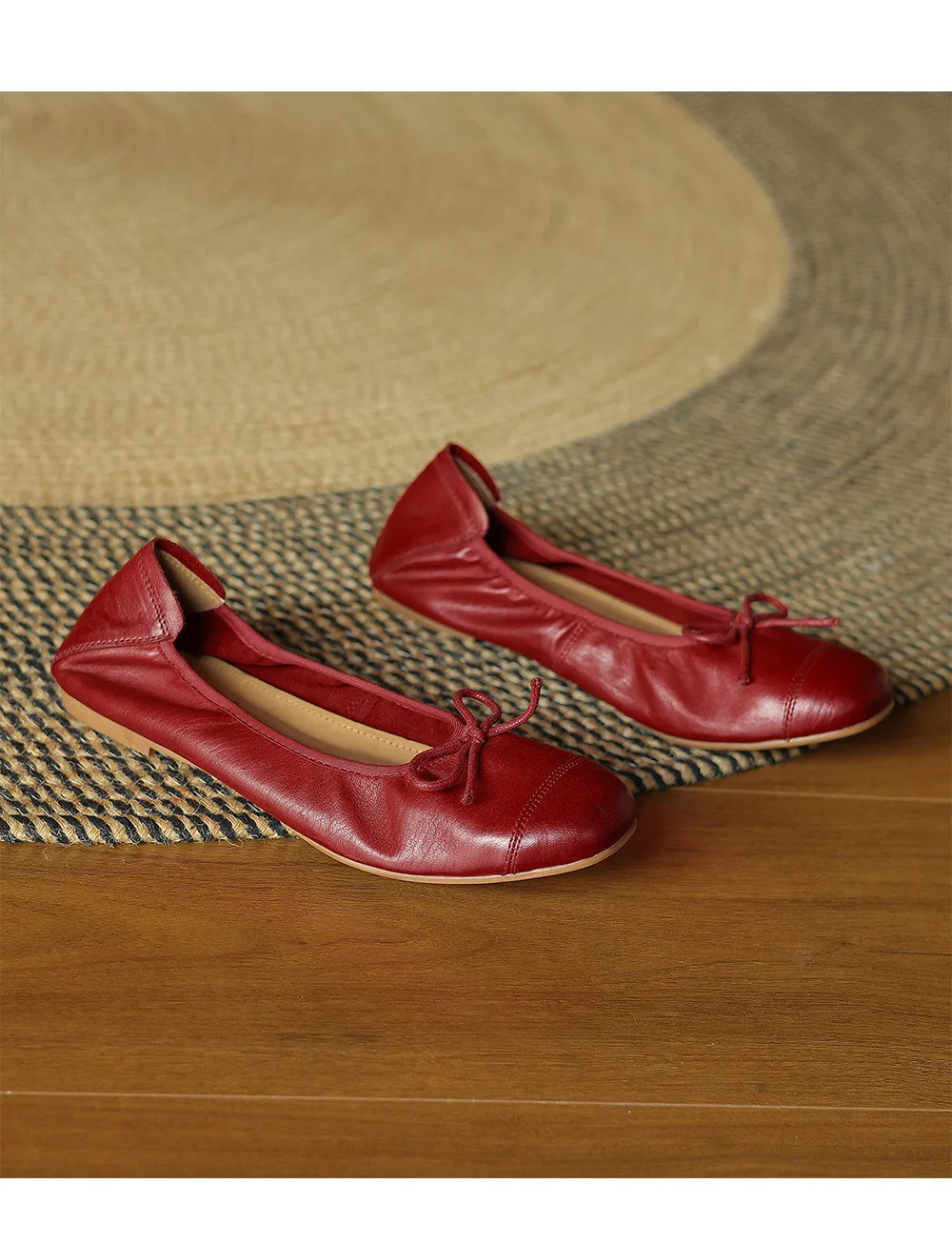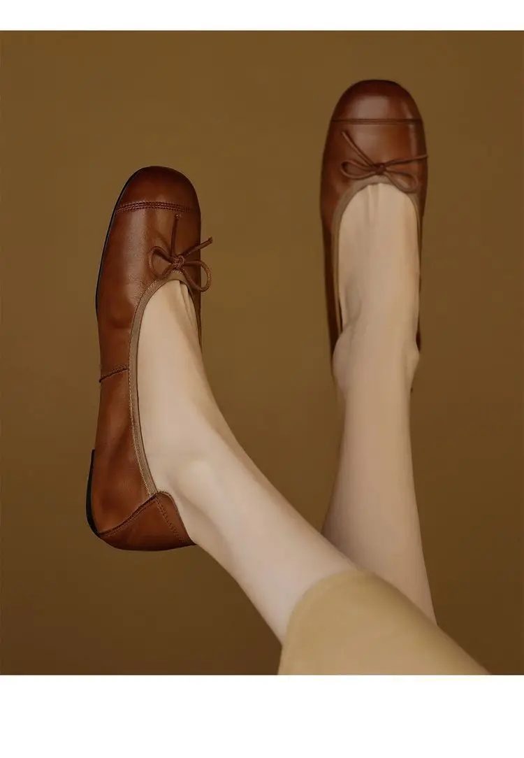 Mary Jane Women Loafers Hand Stitch Casual Streetwear Ballet Flats Soft Sole Solid Color Women Shoes Comfy Round Head Bow Shoes