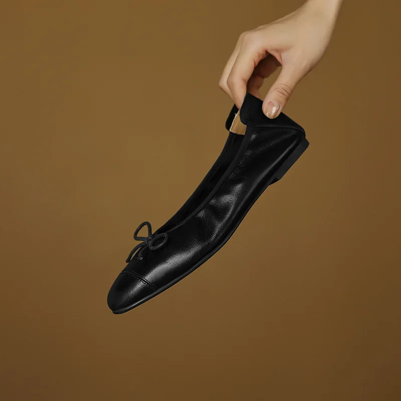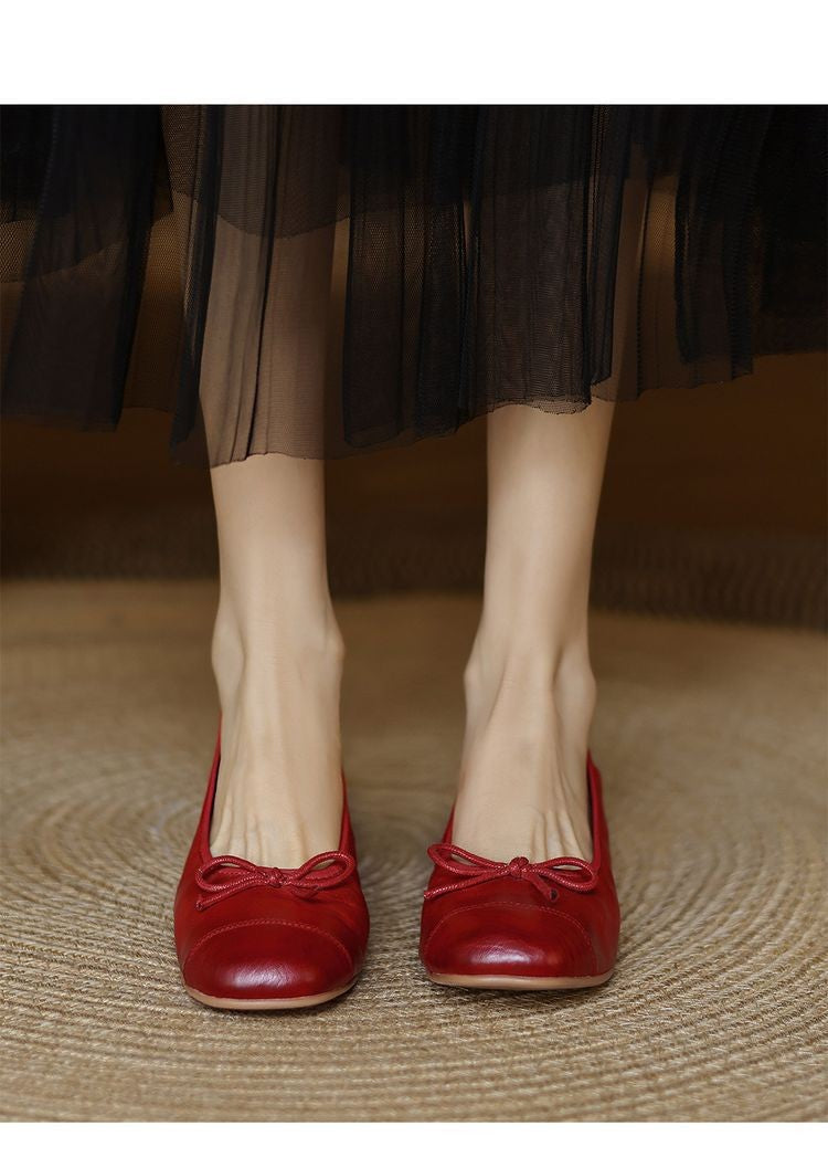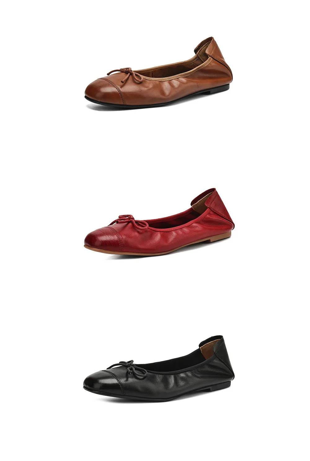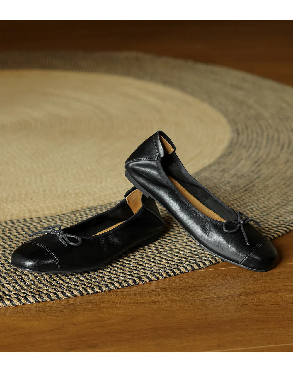 Mary Jane Women Loafers Hand Stitch Casual Streetwear Ballet Flats Soft Sole Solid Color Women Shoes Comfy Round Head Bow Shoes