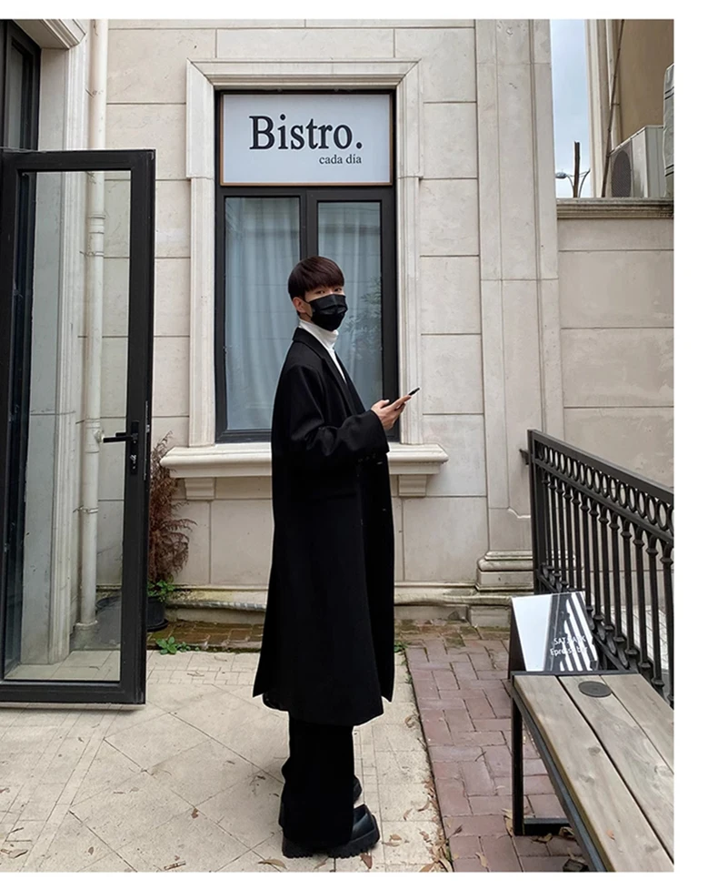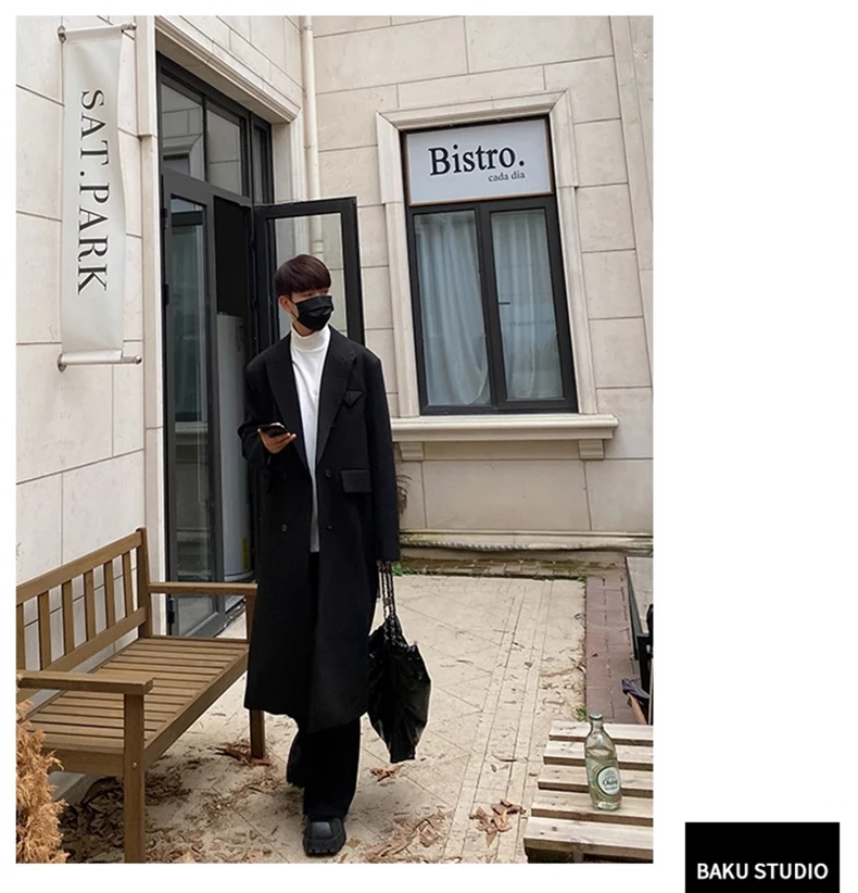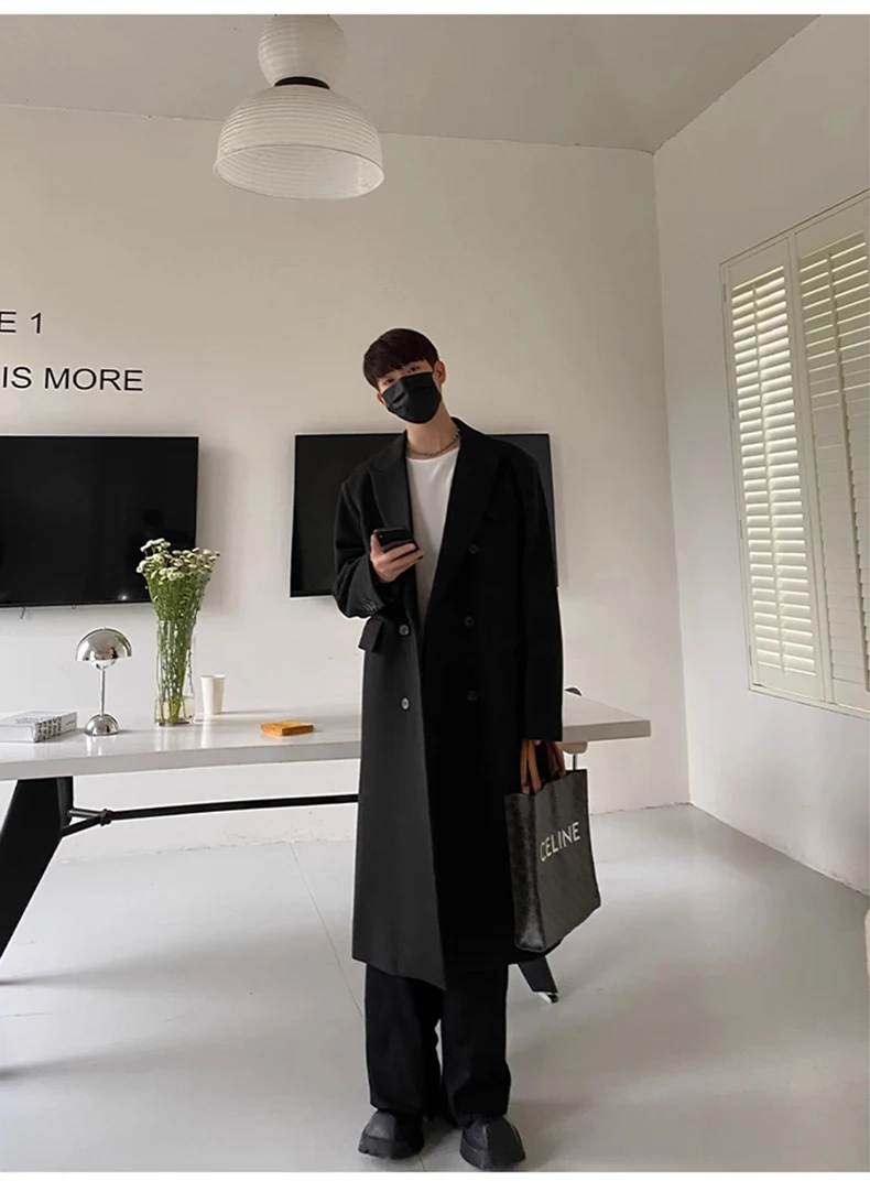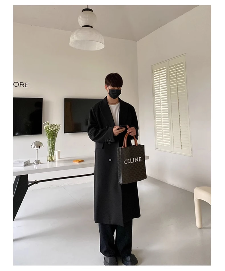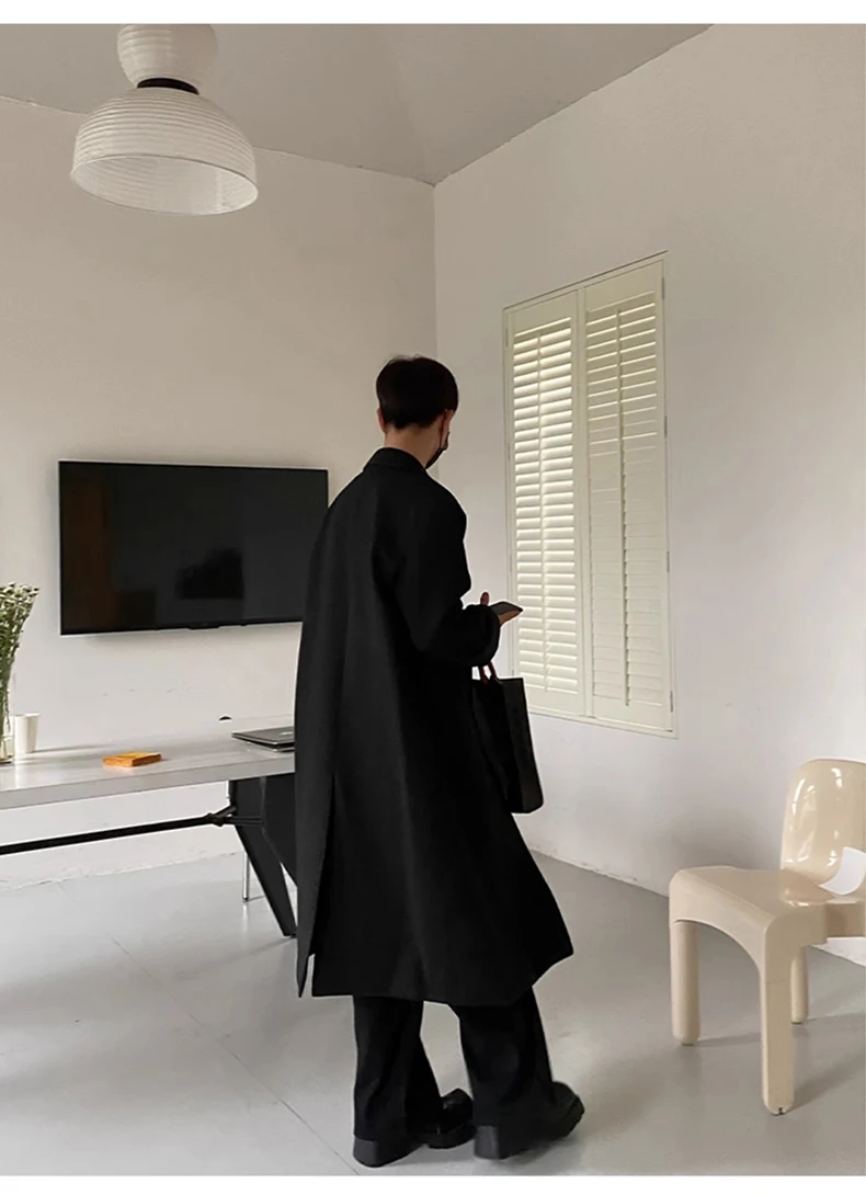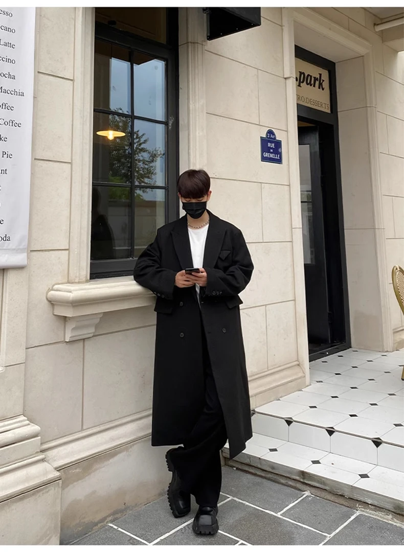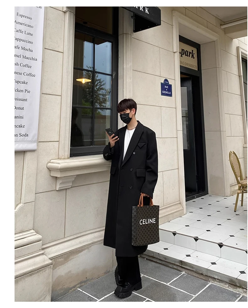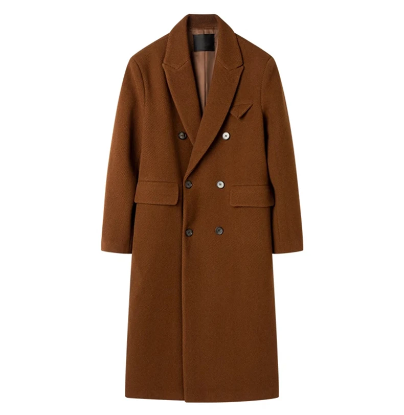 Mauroicardi Autumn Winter Long Warm Coffee Black Soft Woolen Coat Men Double Breasted Loose Casual Wool Blends Overcoat 2023
