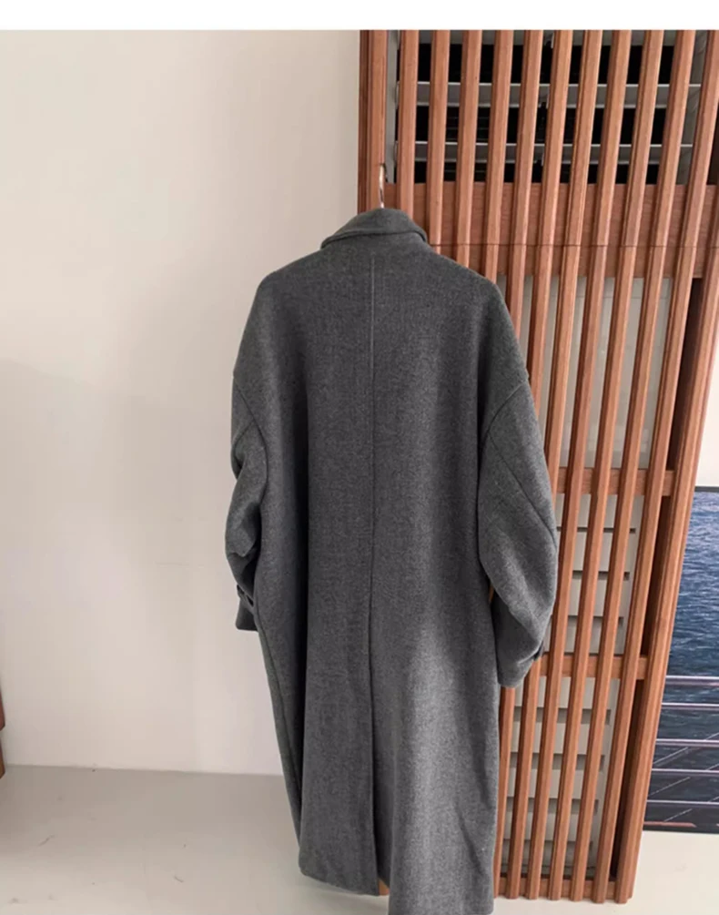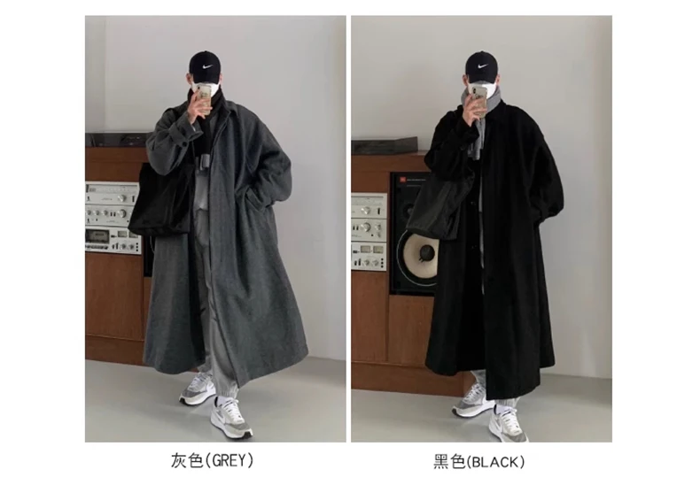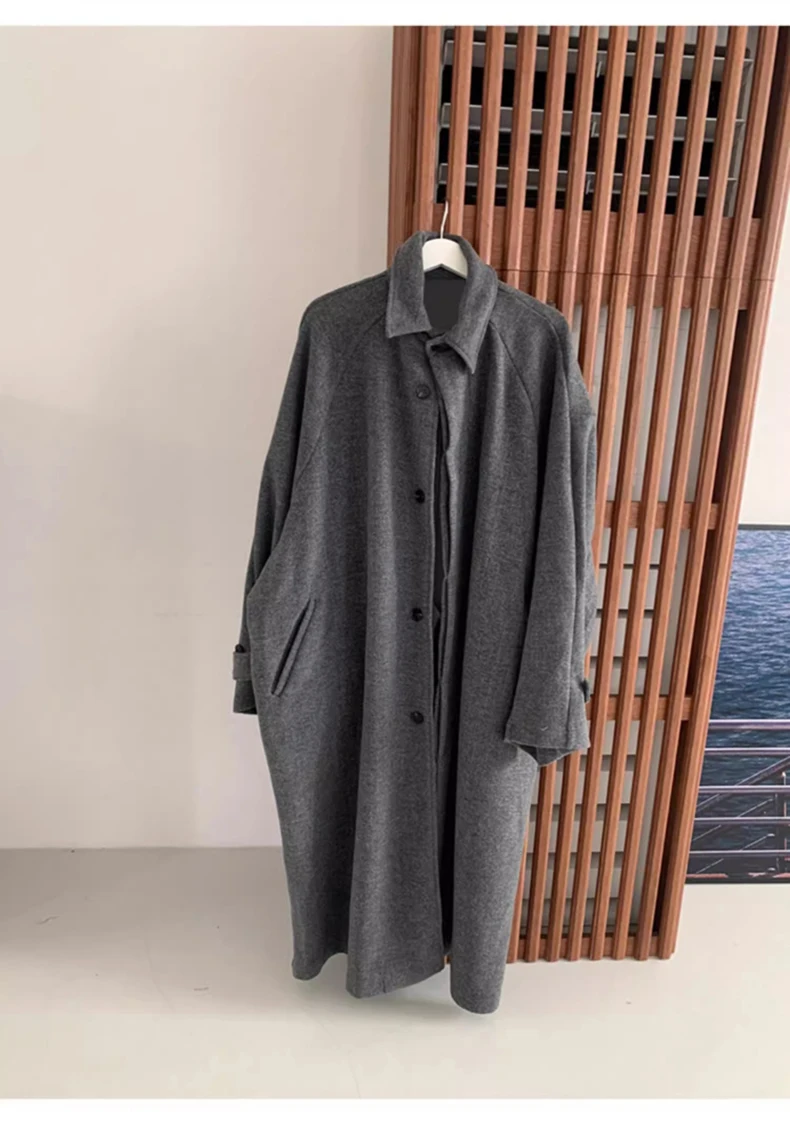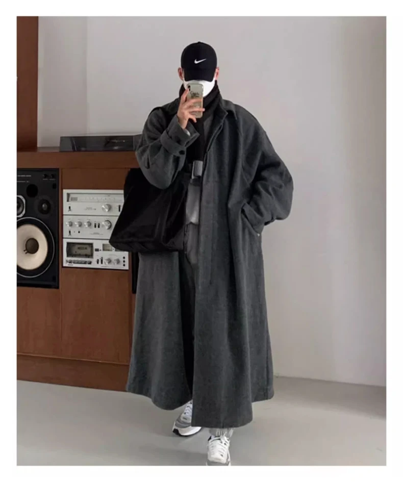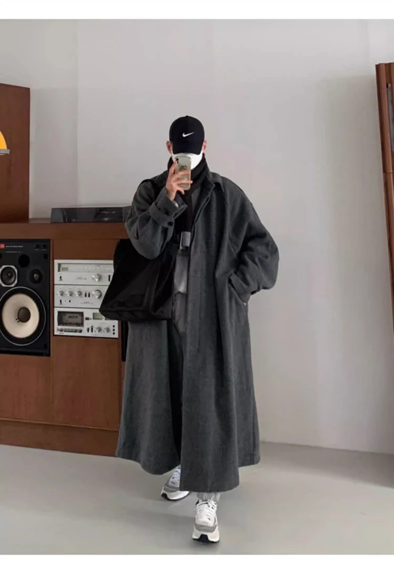 Mauroicardi Autumn Winter Long Warm Grey Black Slouchy Woolen Coat Men Single Breasted Loose Casual Wool Blends Overcoat 2023