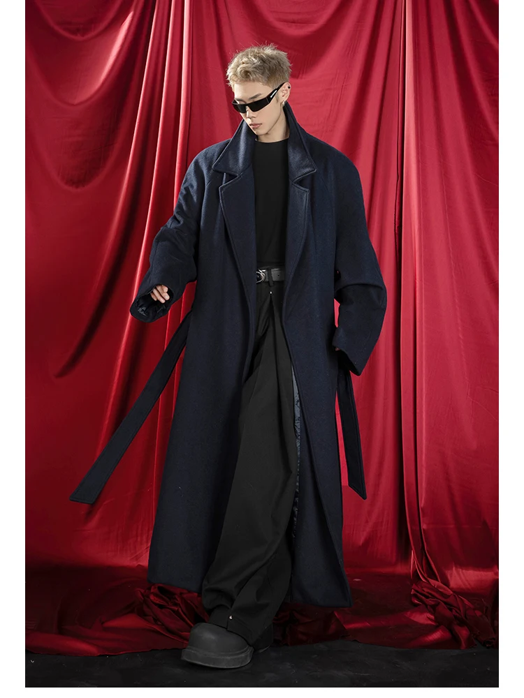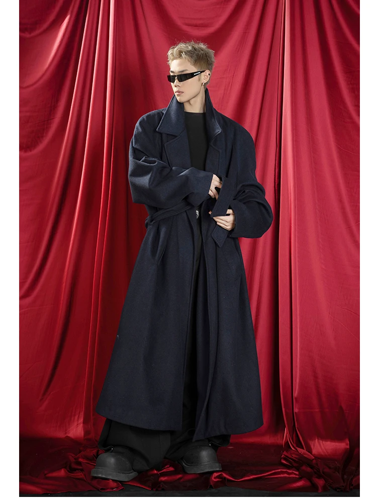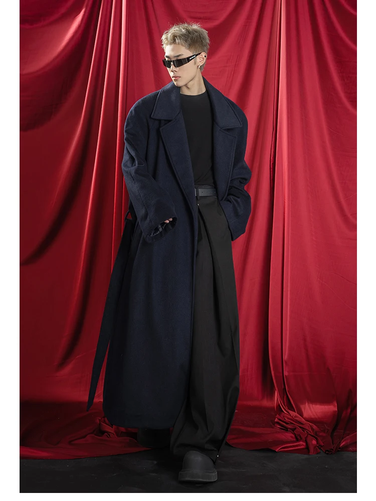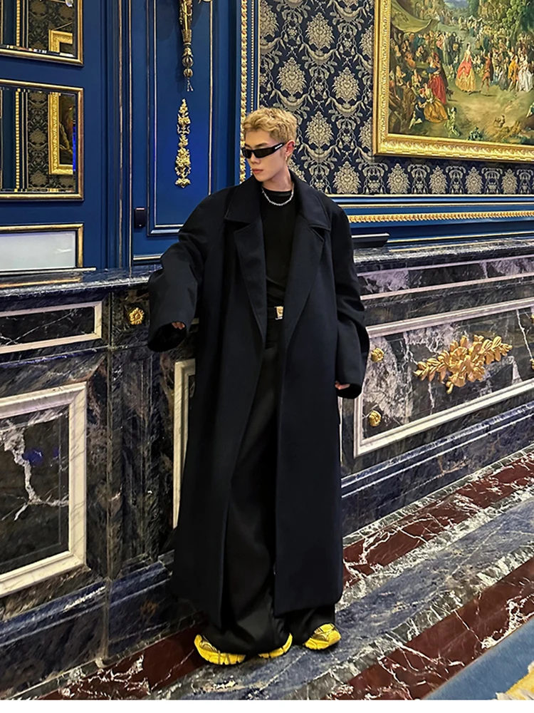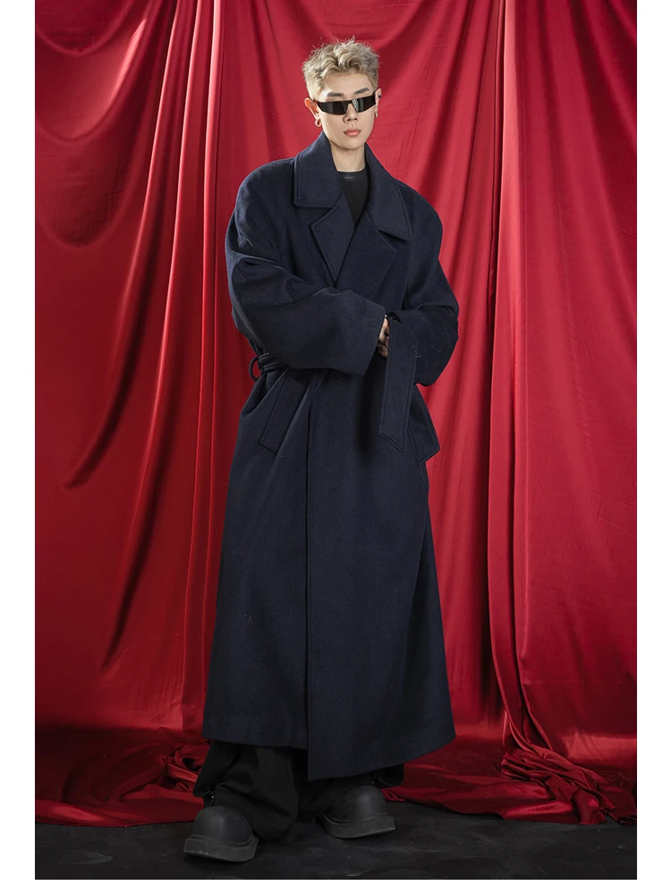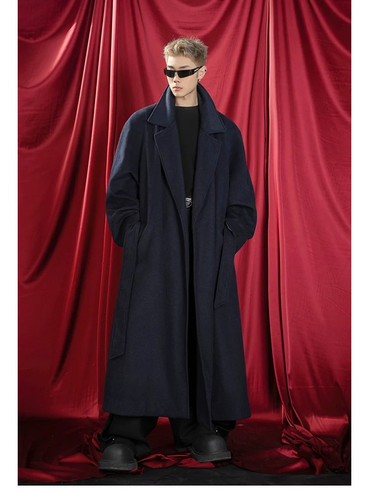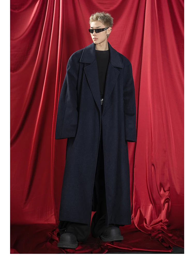 Mauroicardi Autumn Winter Oversized Extra Long Warm Navy Blue Wool Blends Coat Men Loose Luxury Designer Woolen Overcoat 2024
