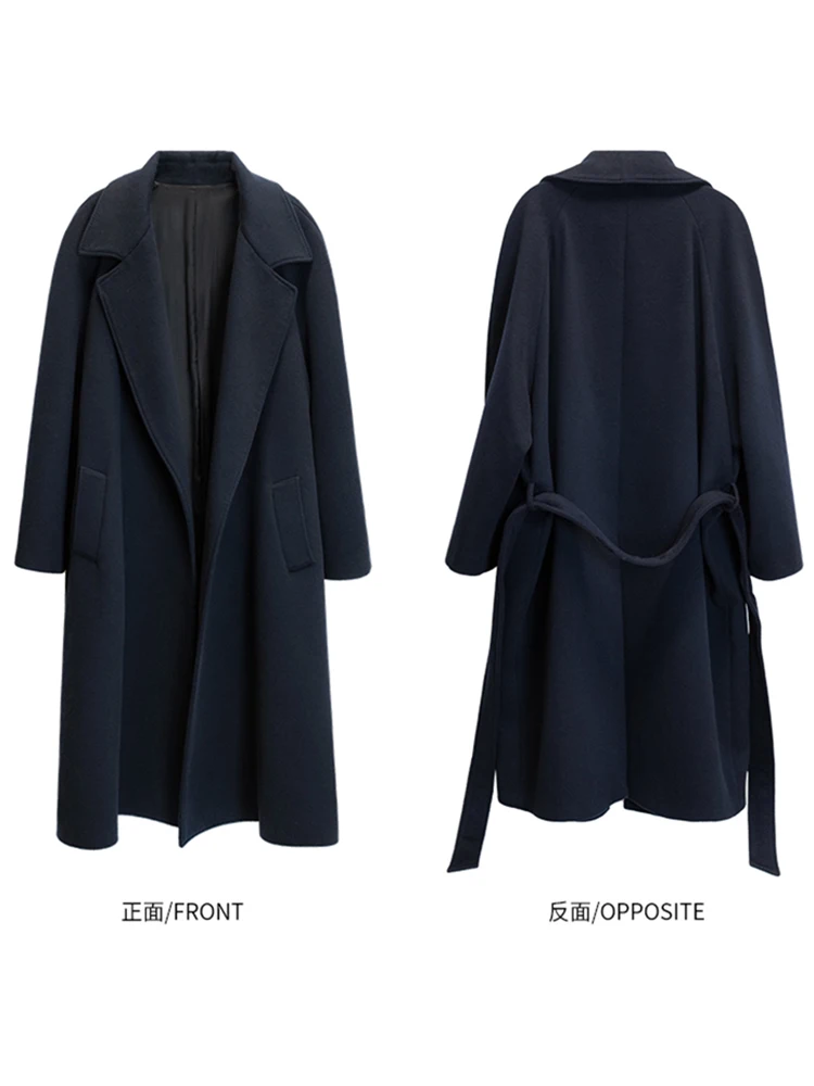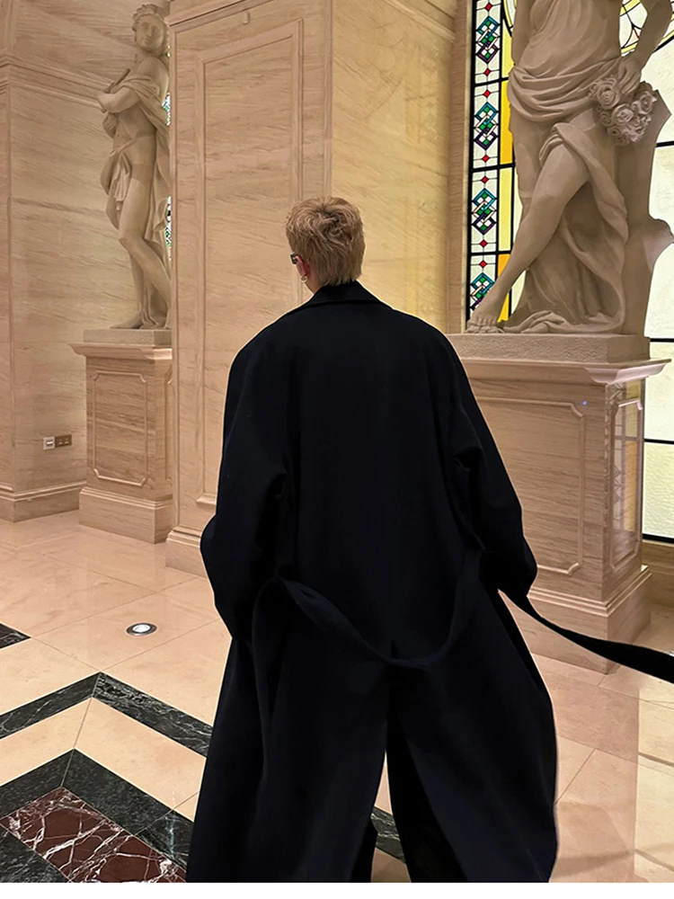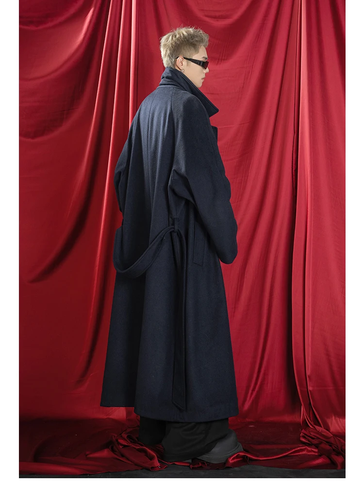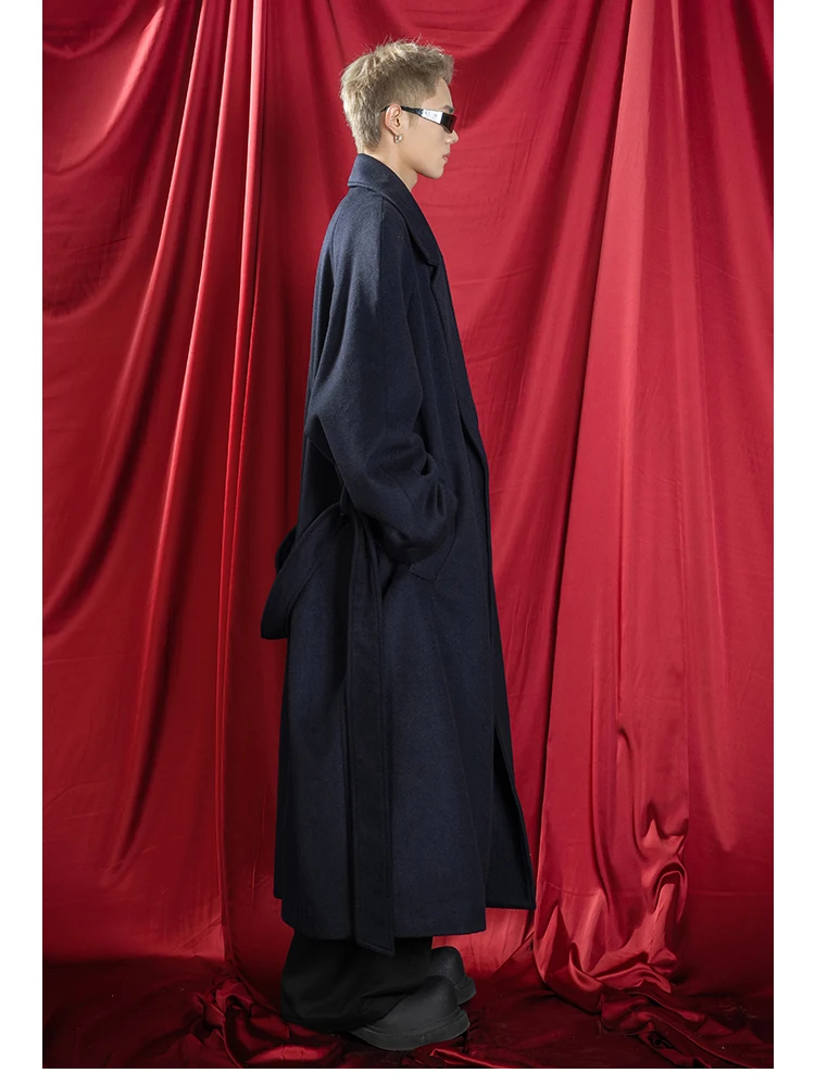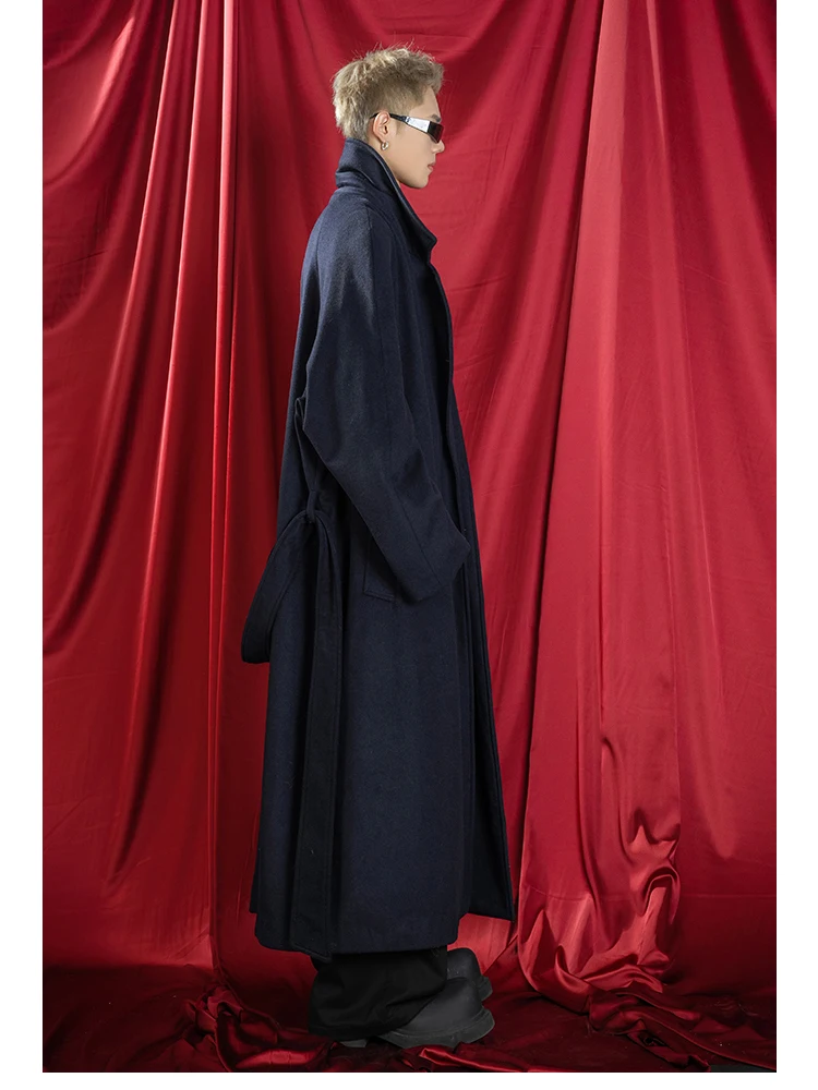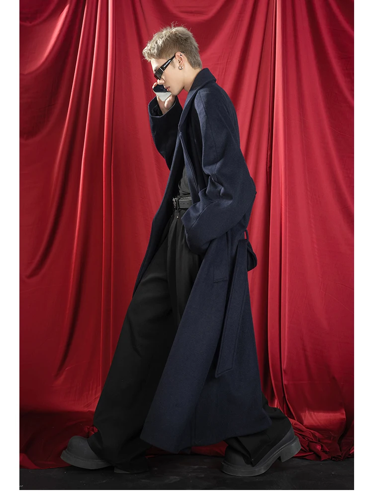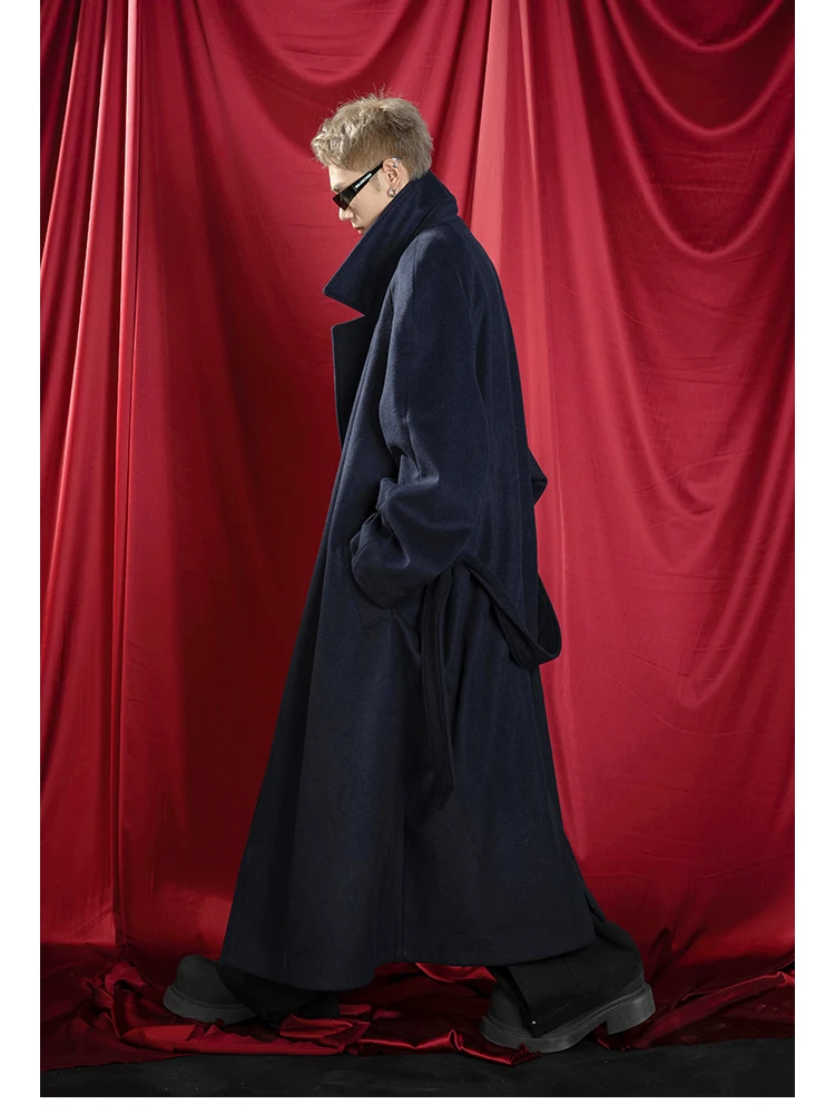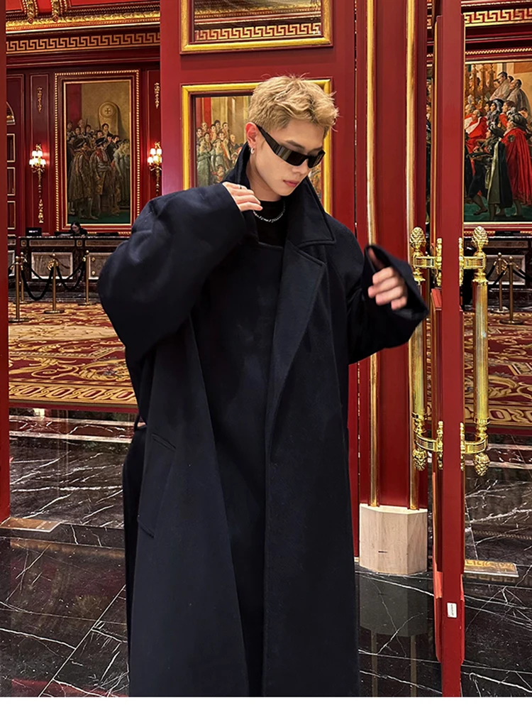Mauroicardi Autumn Winter Oversized Extra Long Warm Navy Blue Wool Blends Coat Men Loose Luxury Designer Woolen Overcoat 2024