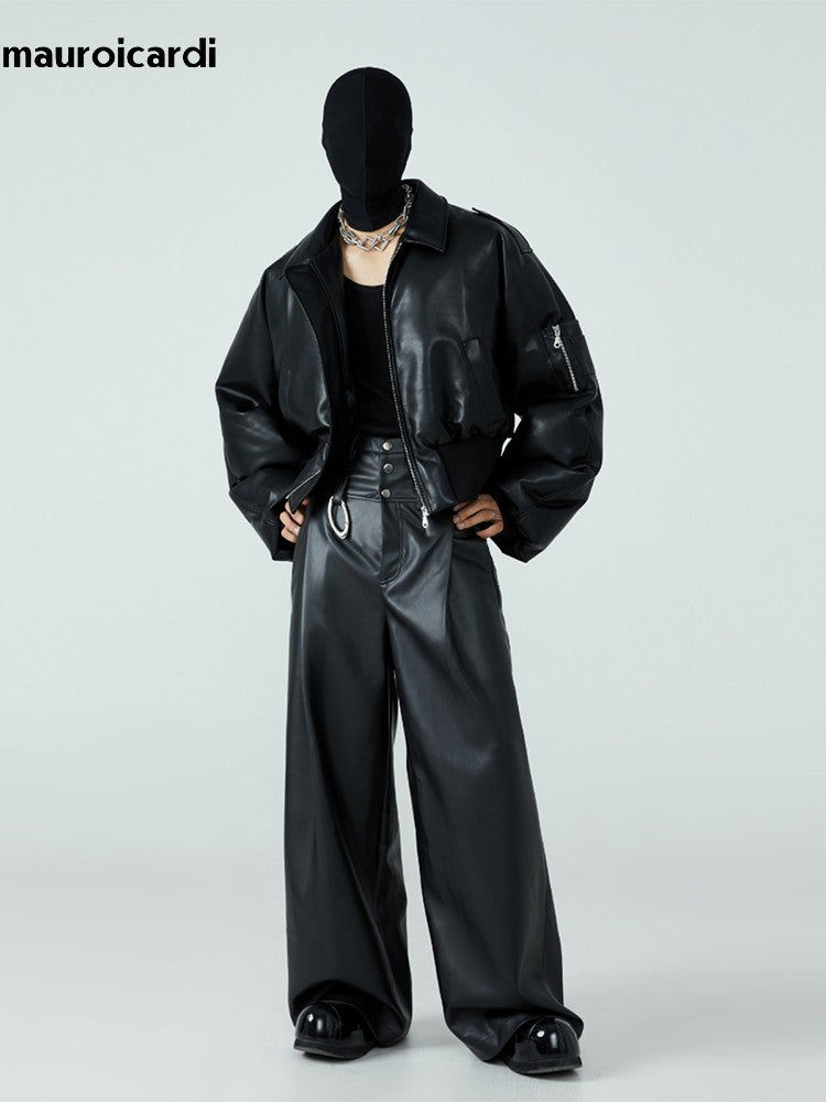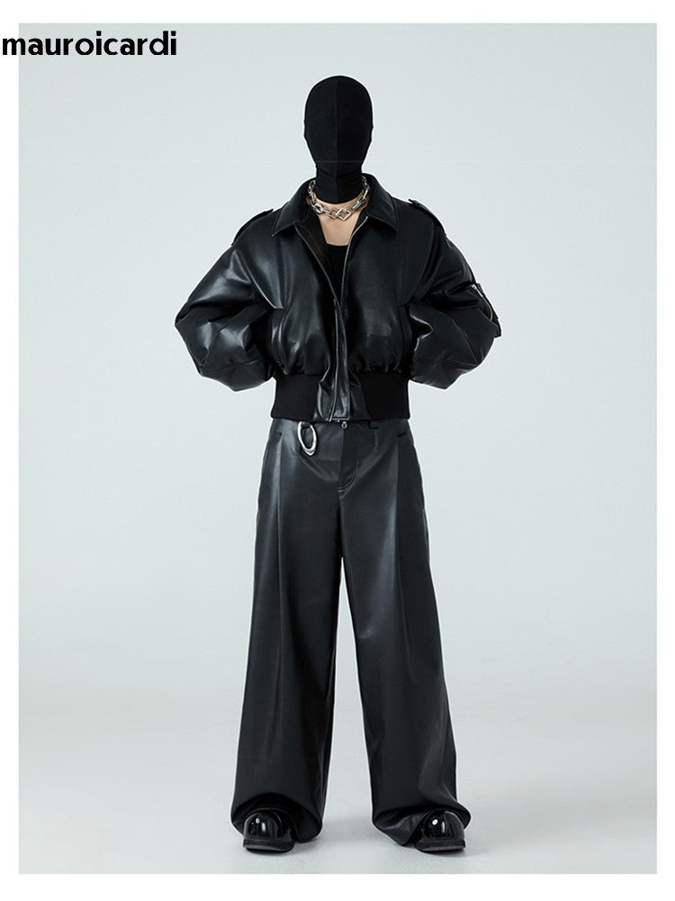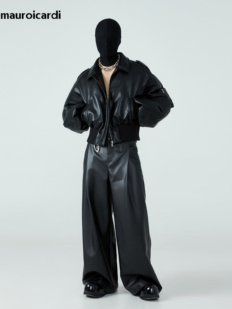 Mauroicardi Autumn Winter Short Thick Warm Black Pu Leather Jacket Men with Long Sleeve Zipper Casual Luxury Designer Clothes