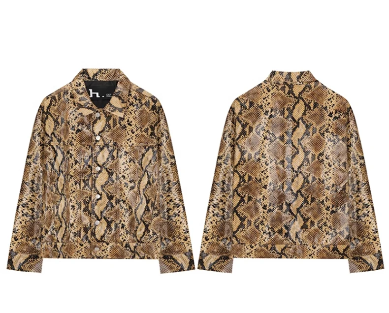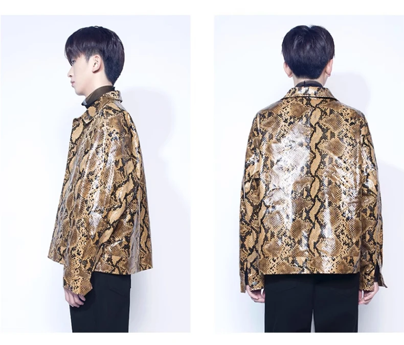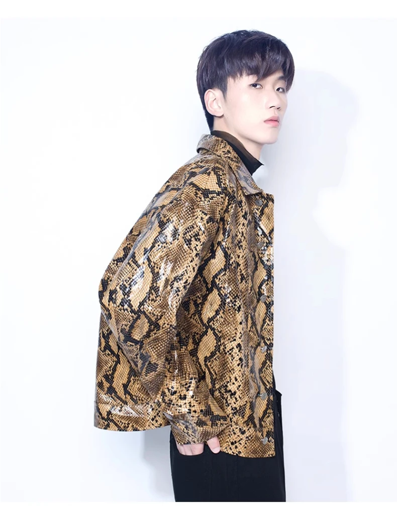 Mauroicardi Spring Autumn Loose Cool Shiny Colorful Snakeskin Print Pu Leather Jacket Men Luxury Designer Clothes Streeetwear