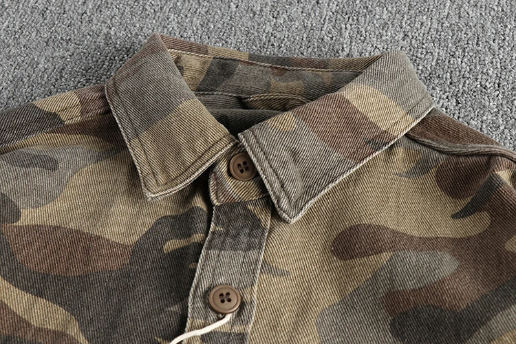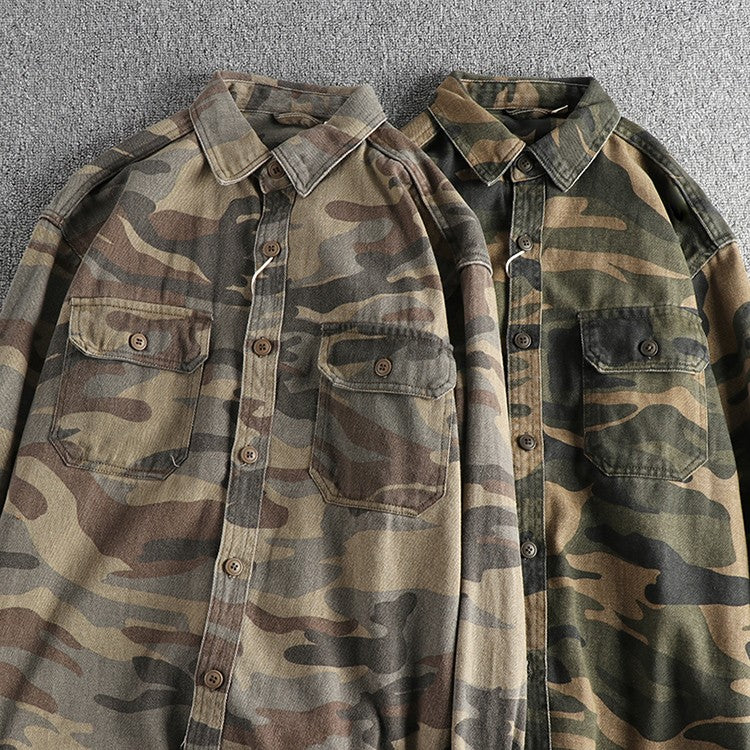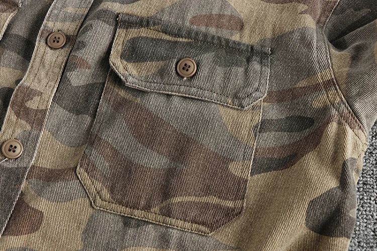 May Khaki wash vintage thick woven cotton cargo long sleeve shirt men's autumn and winter casual shirt coat