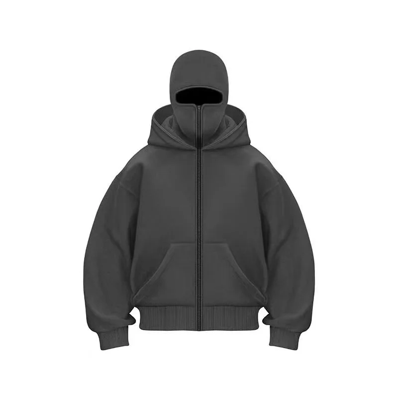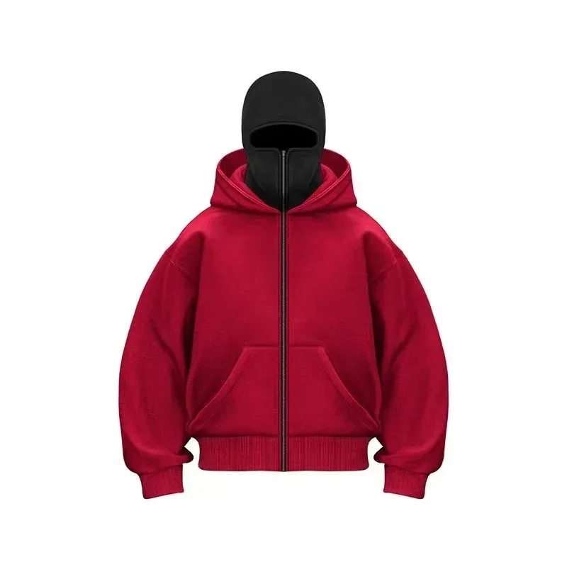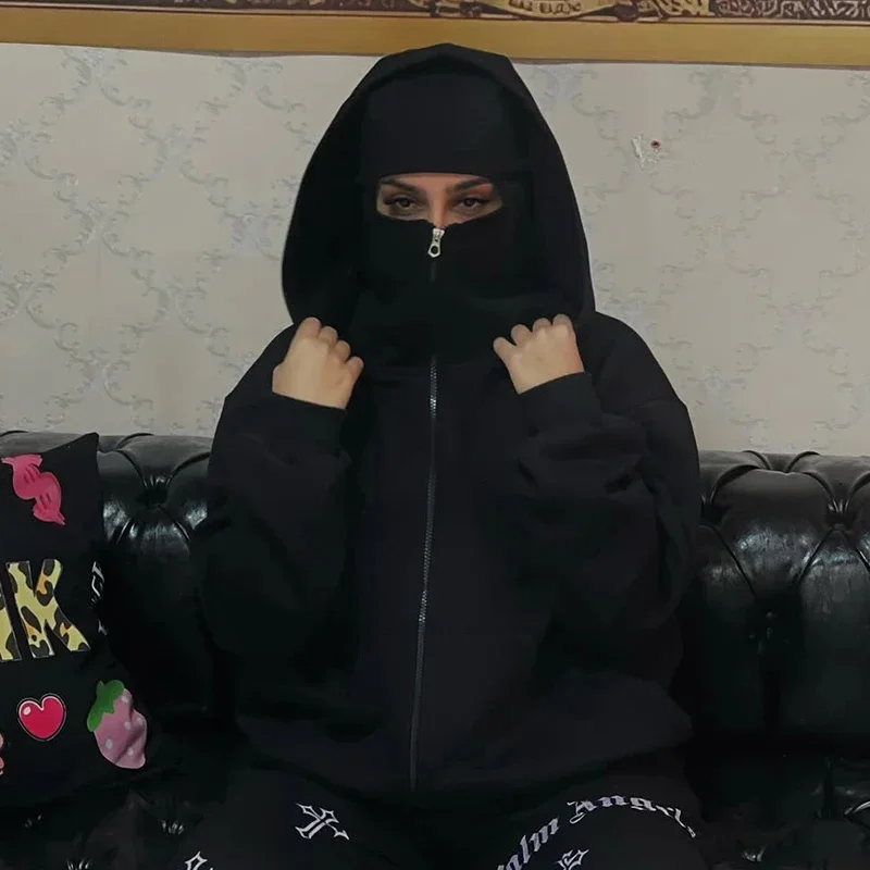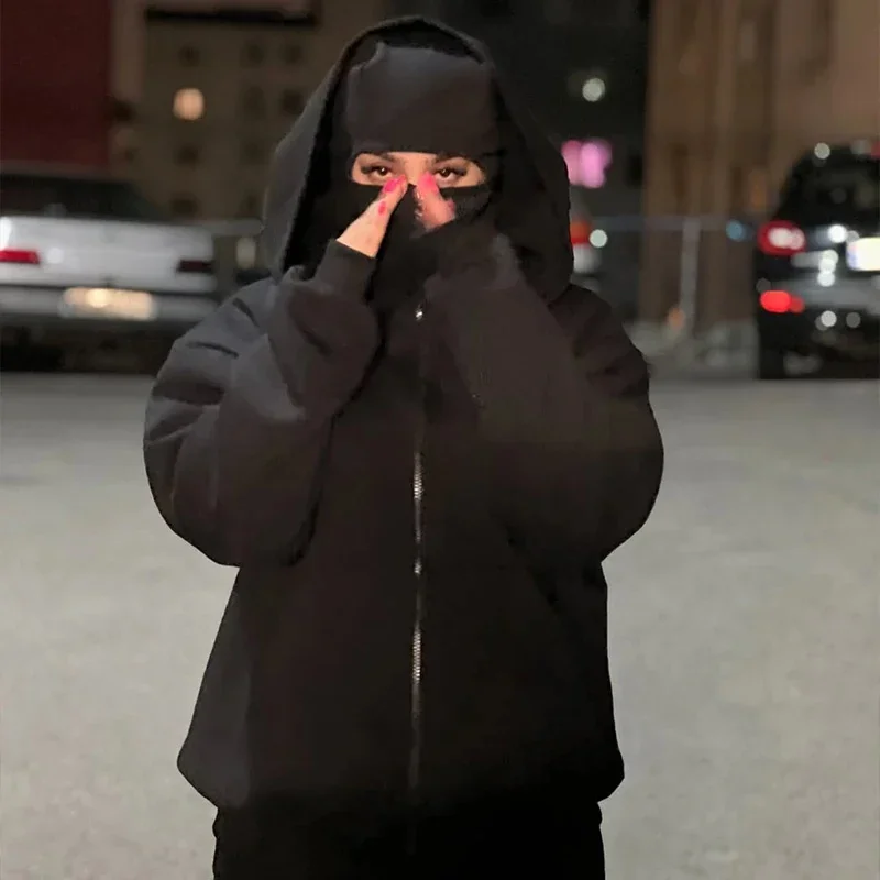 Men and women Balaclava Y2K Gothic Harajuku winter new item double hooded sweatshirt men's hooded mask zipper sportswear