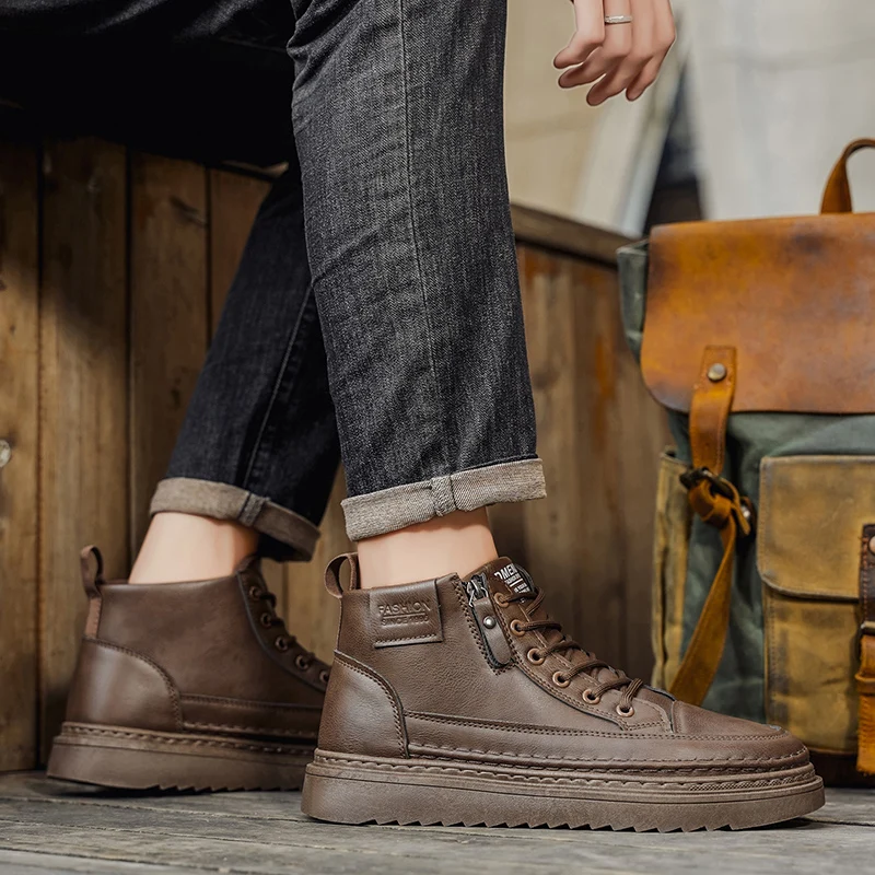 Men Boots Winter High Top Leather Shoes Fashion Cotton Shoes Fashion Ankle Boots Business Casual Outdoor Shoes Male Sneakers New