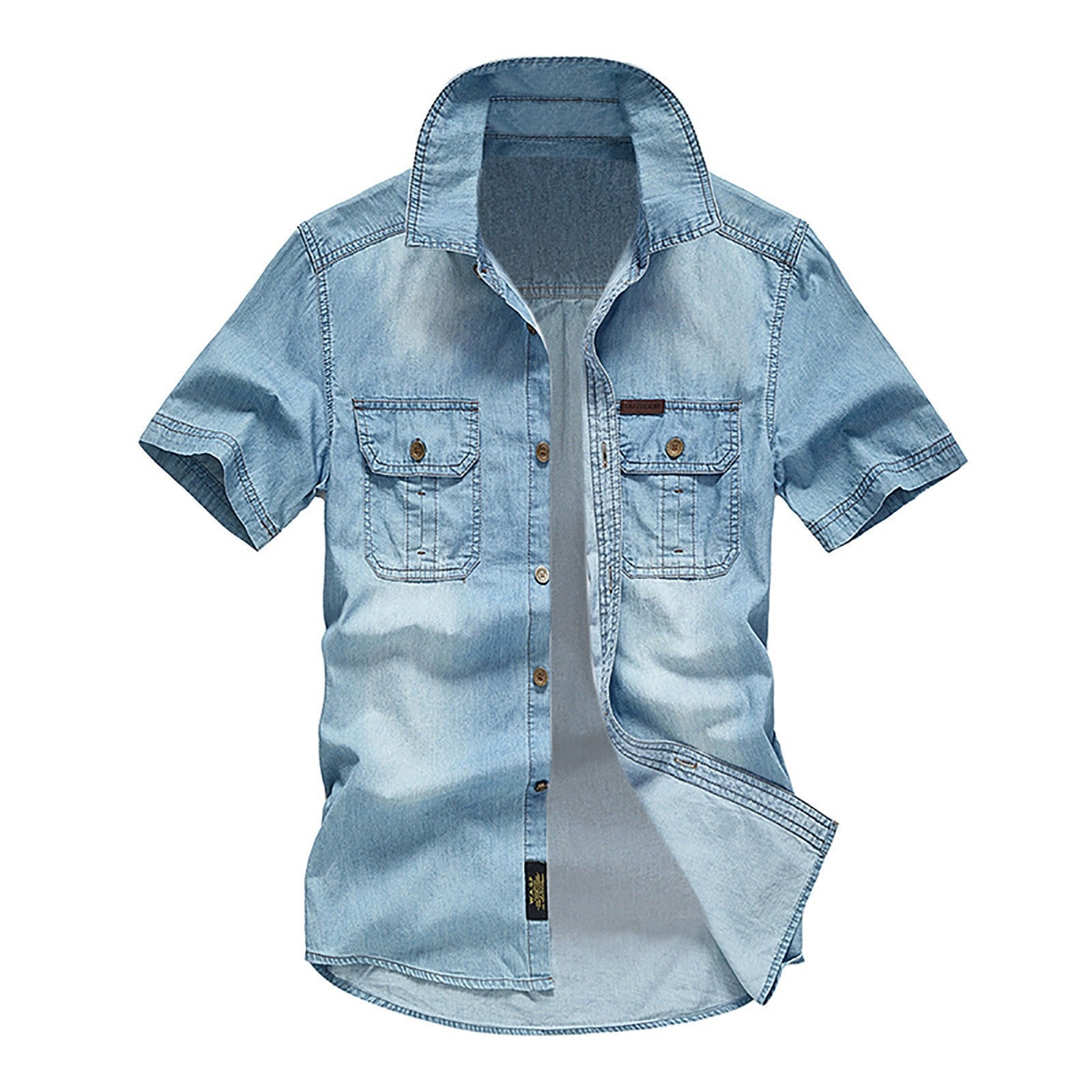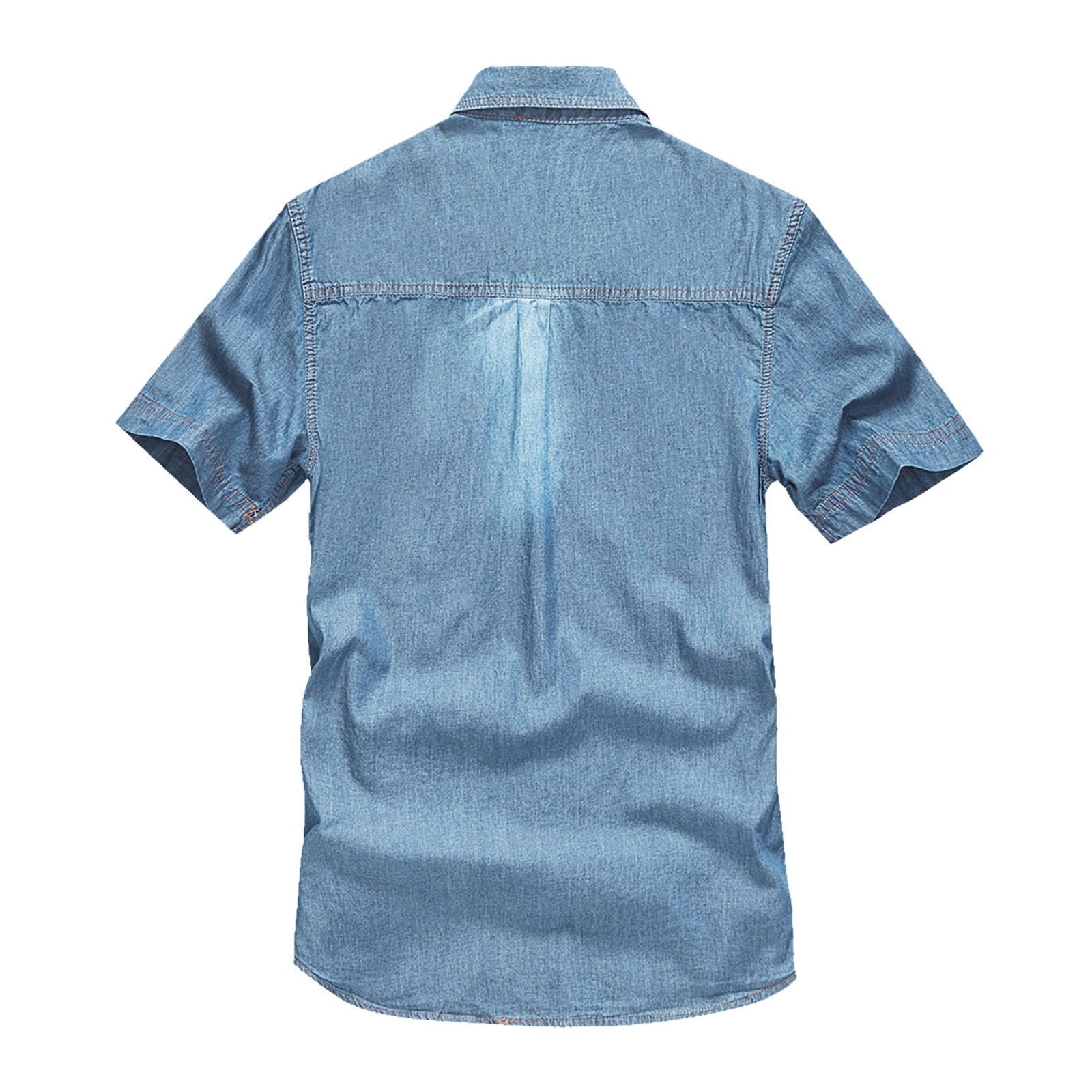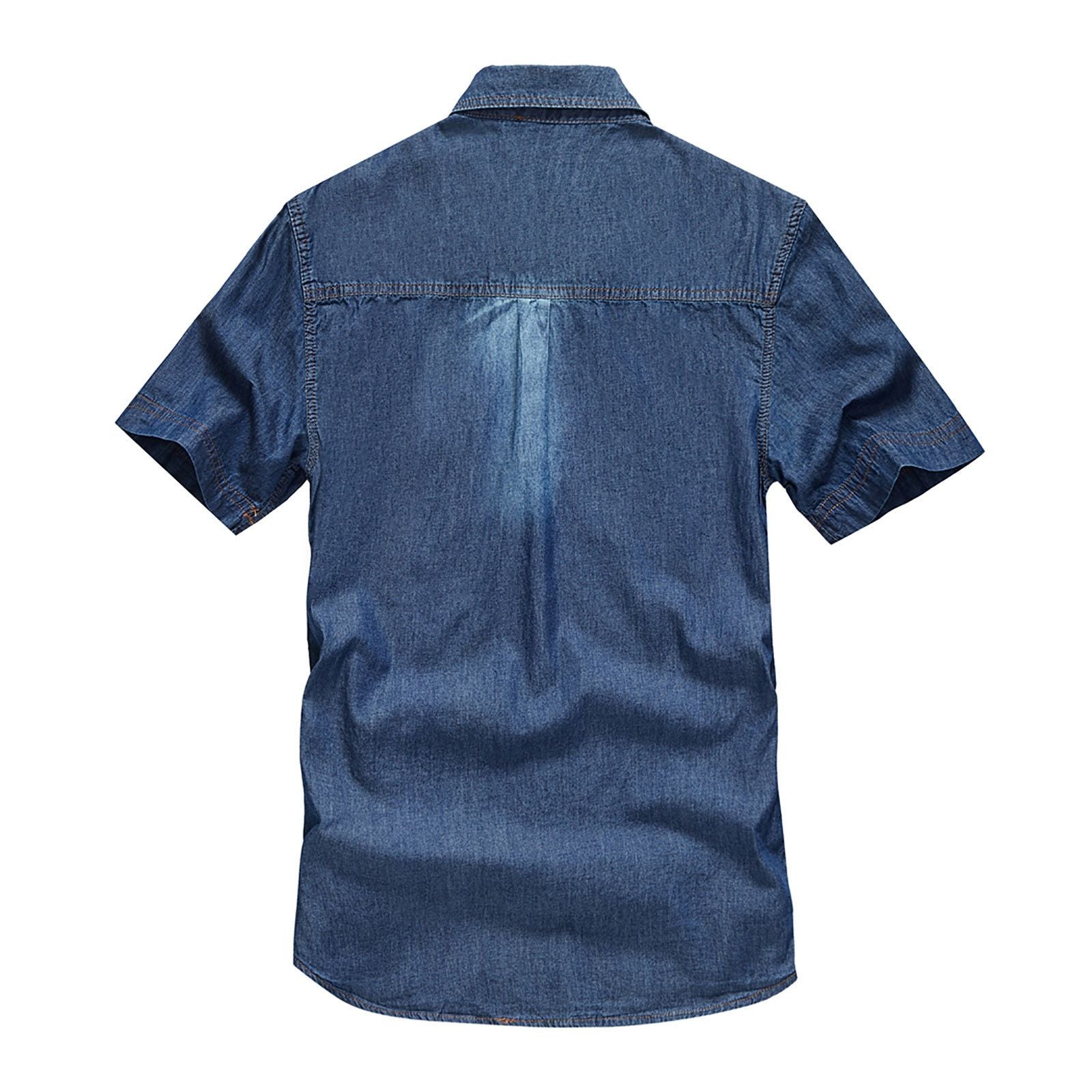 Men's Retro Cotton Large Size Pocket Button Short Sleeved Lapel Work Shirt