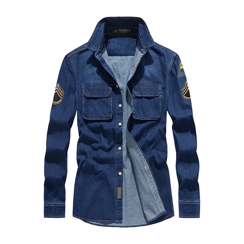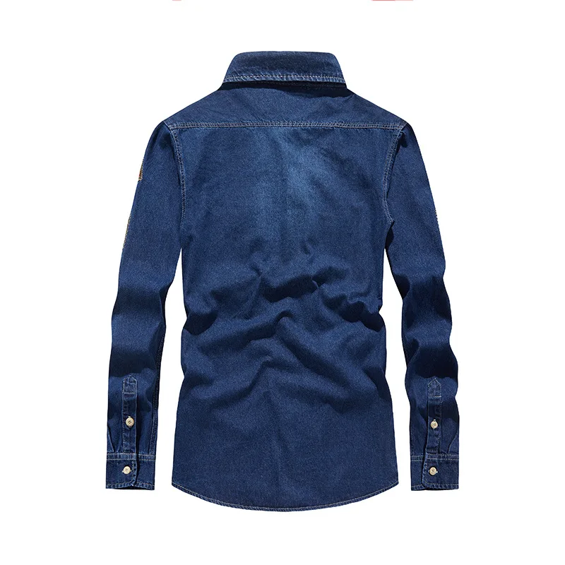 Men Long Sleeved Casual Denim Shirts High Quality Male Cotton Multi pockets Cargo Shirts New Spring Man Fashion Jeans Shirts 5XL