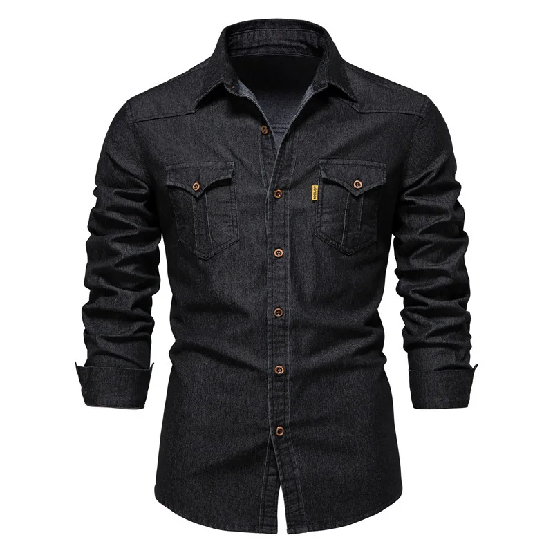 Men Loose Denim Shirts Coat Long Sleeve Single Breasted Shirt Pocket Spliced Turn Down Collar Blouses Cardigan Solid Vintage
