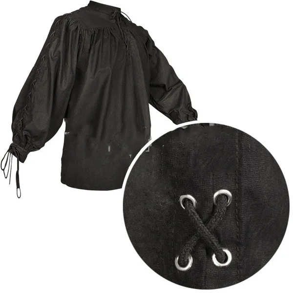 Men Medieval Shirts Drawstring Viking Vintage Sleeve Tunic Cosplay Tops Knight Costume Ruffle Pirate Gothic Neckline Male Shirts