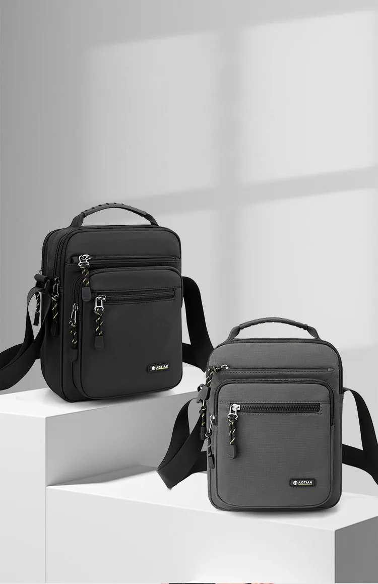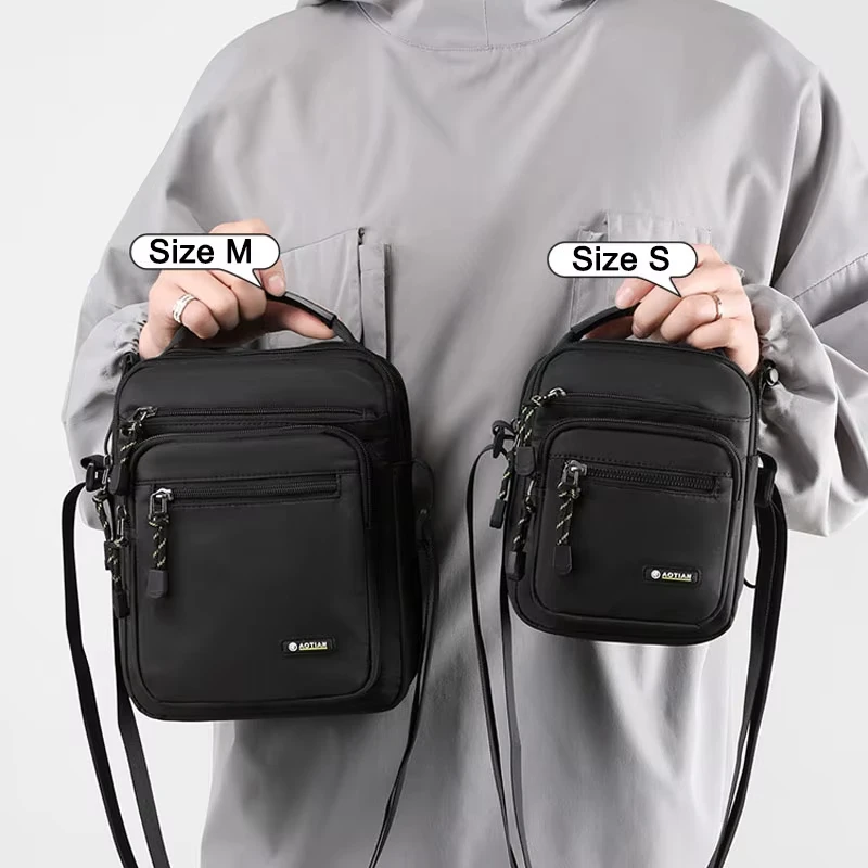 Men Multi-layer Shoulder Bag Fashionable Casual Lightweight Nylon Crossbody Bag for Daily Outing Commuting Small Handbag