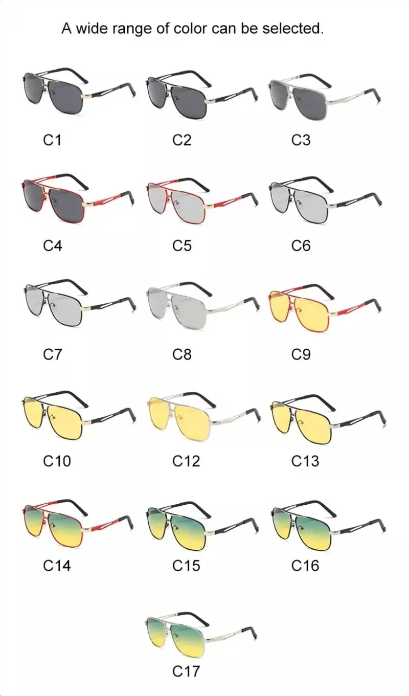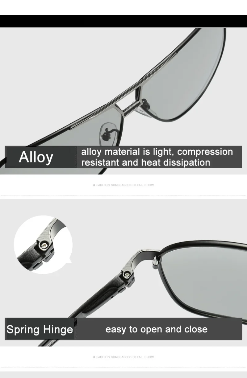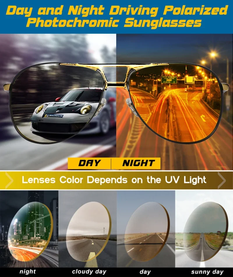 Men Night Vision Polarized Photochromic Sunglasses Aviator Style Yellow Color Change Lenses Driving Sun Glasses