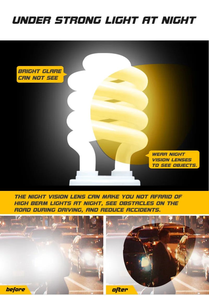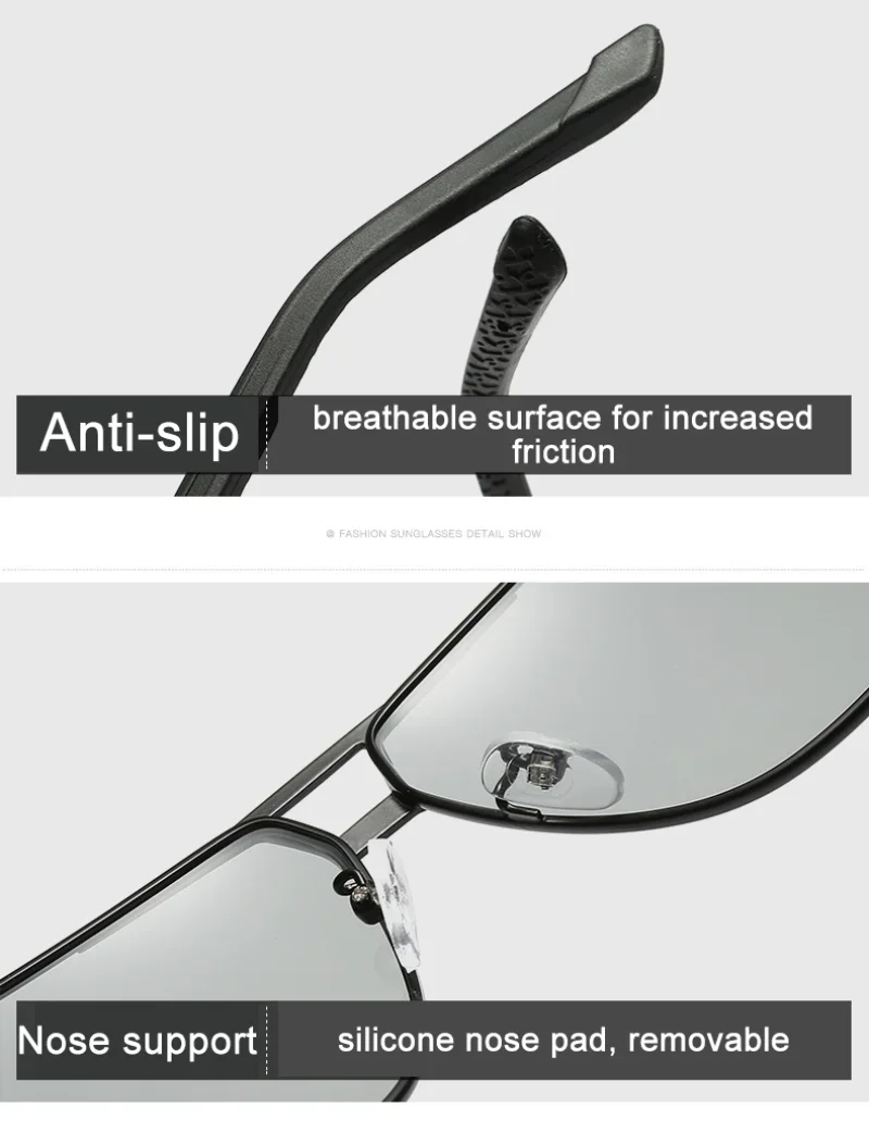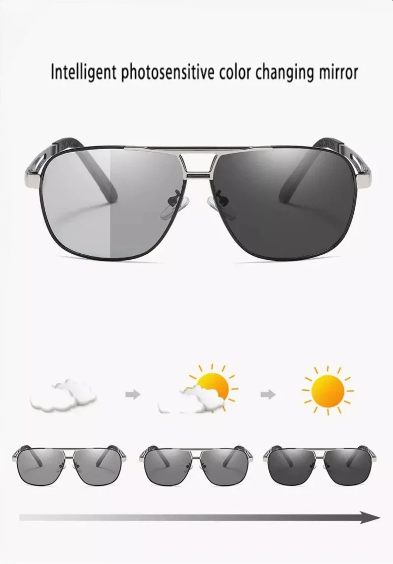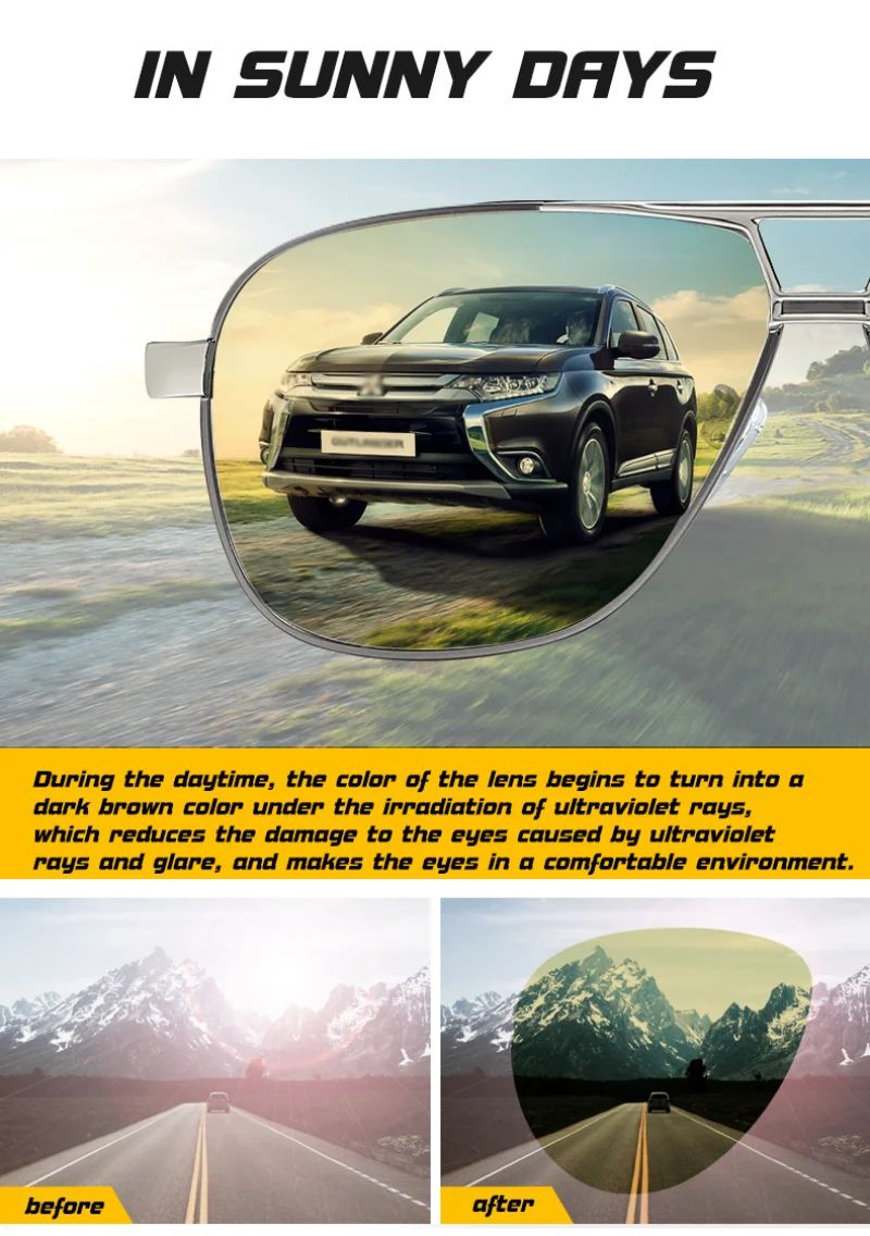 Men Night Vision Polarized Photochromic Sunglasses Aviator Style Yellow Color Change Lenses Driving Sun Glasses