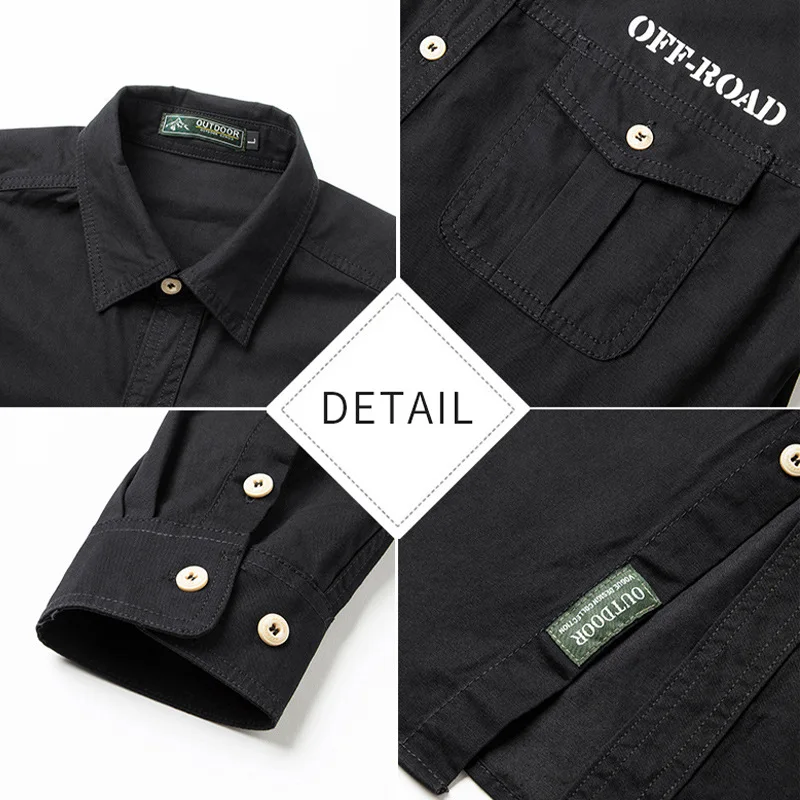 Men Outdoor Multi Pockets Long Sleeved Cargo Shirts High Quality Man Cotton Loose Shirts New Spring Male Casual Shirts Size 5XL