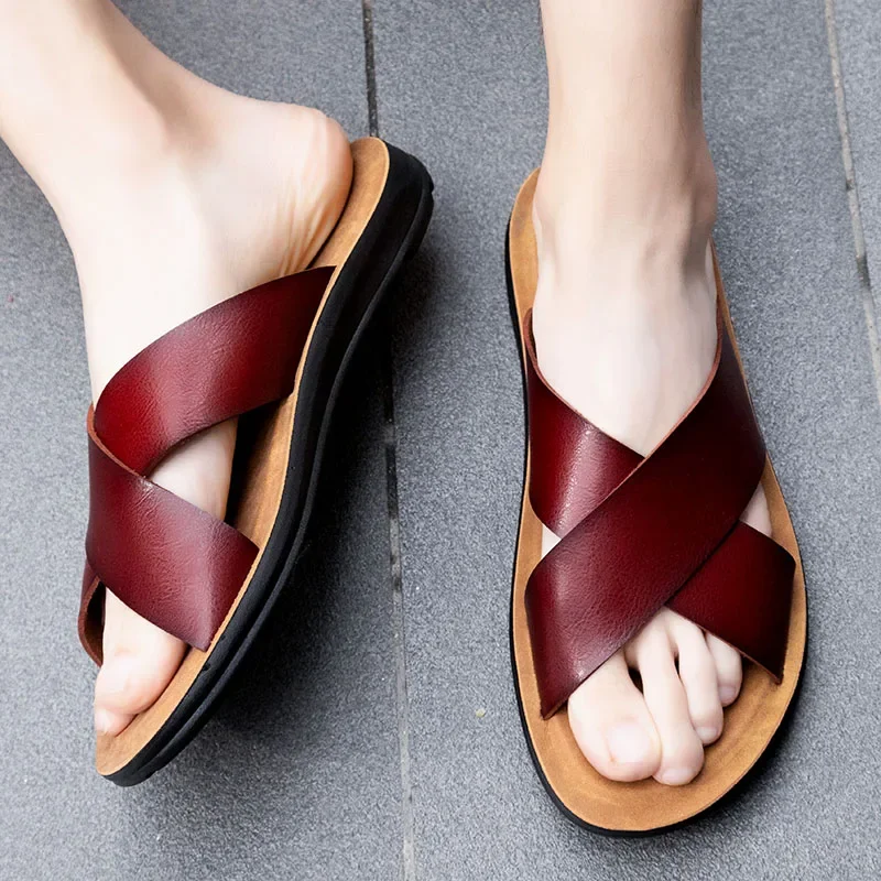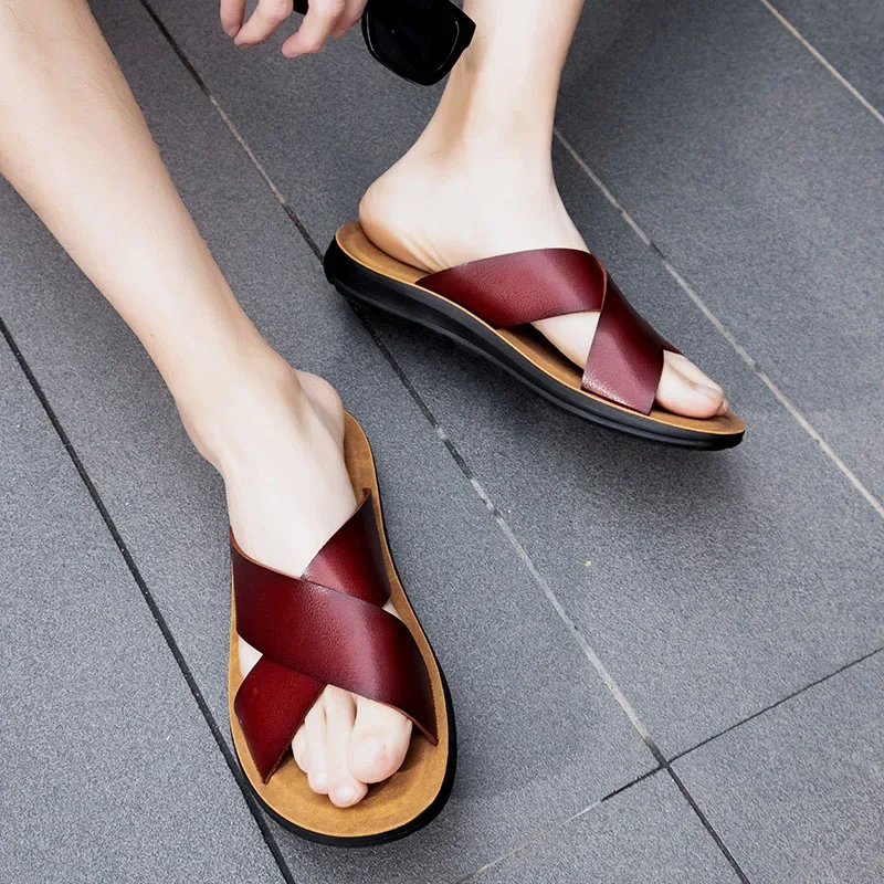 Men Shoes New Summer Shoes Italian Leather Slippers Men High Quality Size 38-47 Beach Slip on Flats Man Flip Flops Mens Sandals