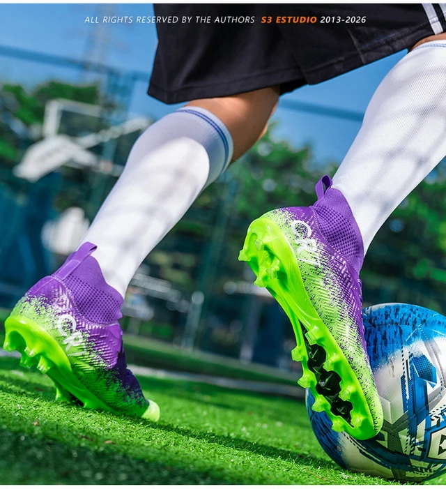 Men Soccer Shoes Football Boots Ultra-light Non-slip Long Spikes Outdoor Professional Cleats Grass Sports Shoes Match Sneakers