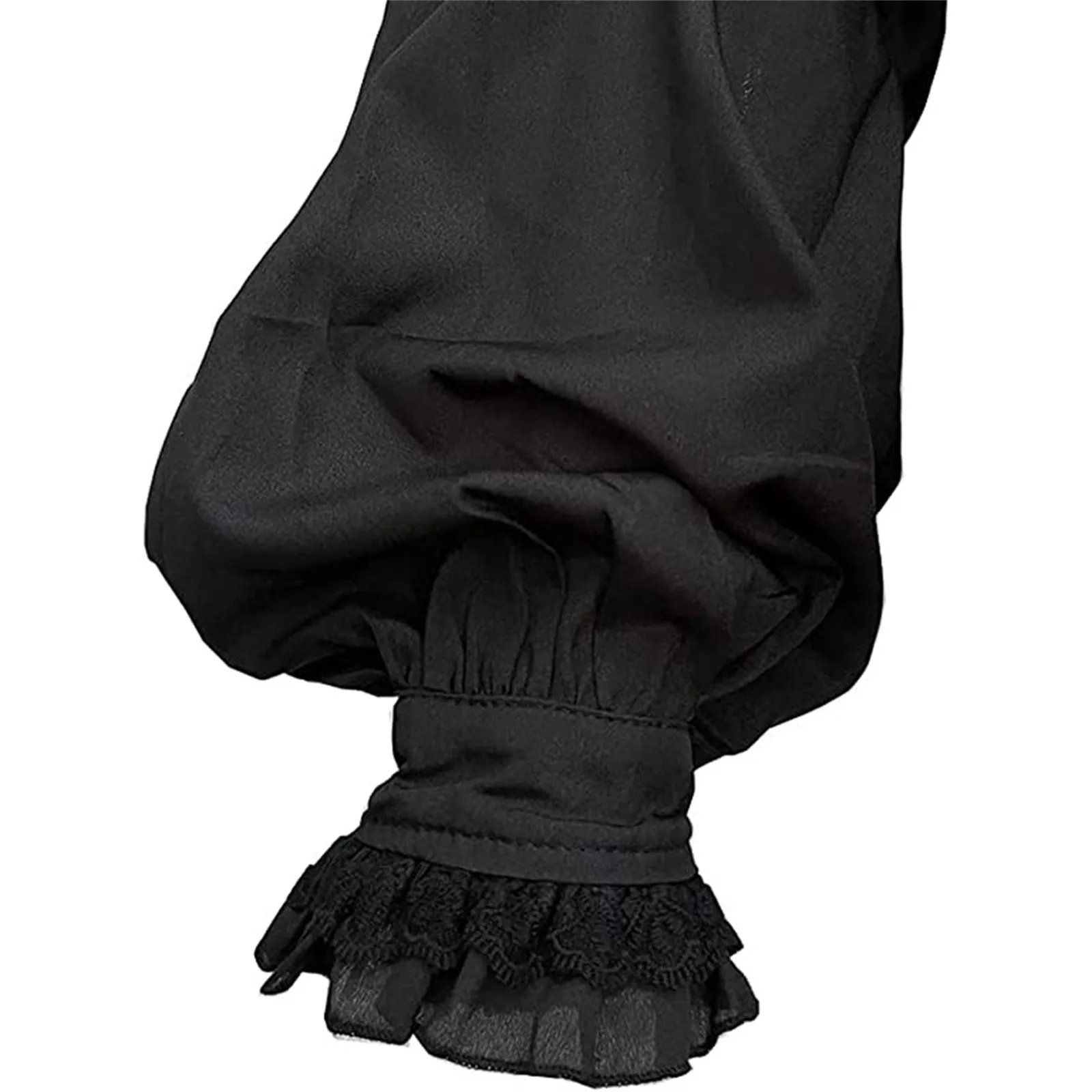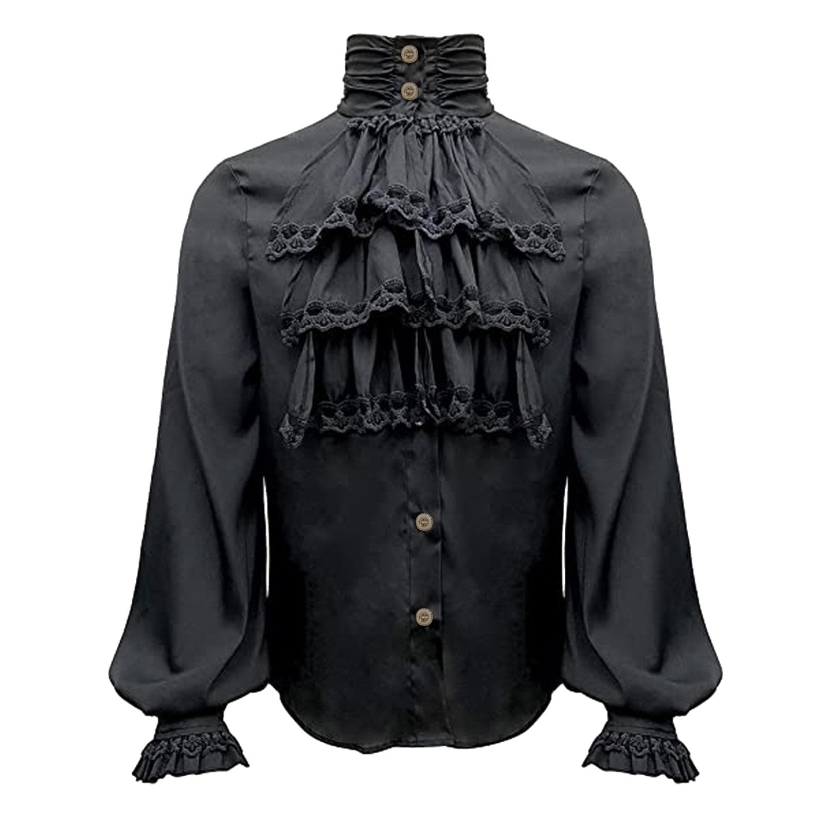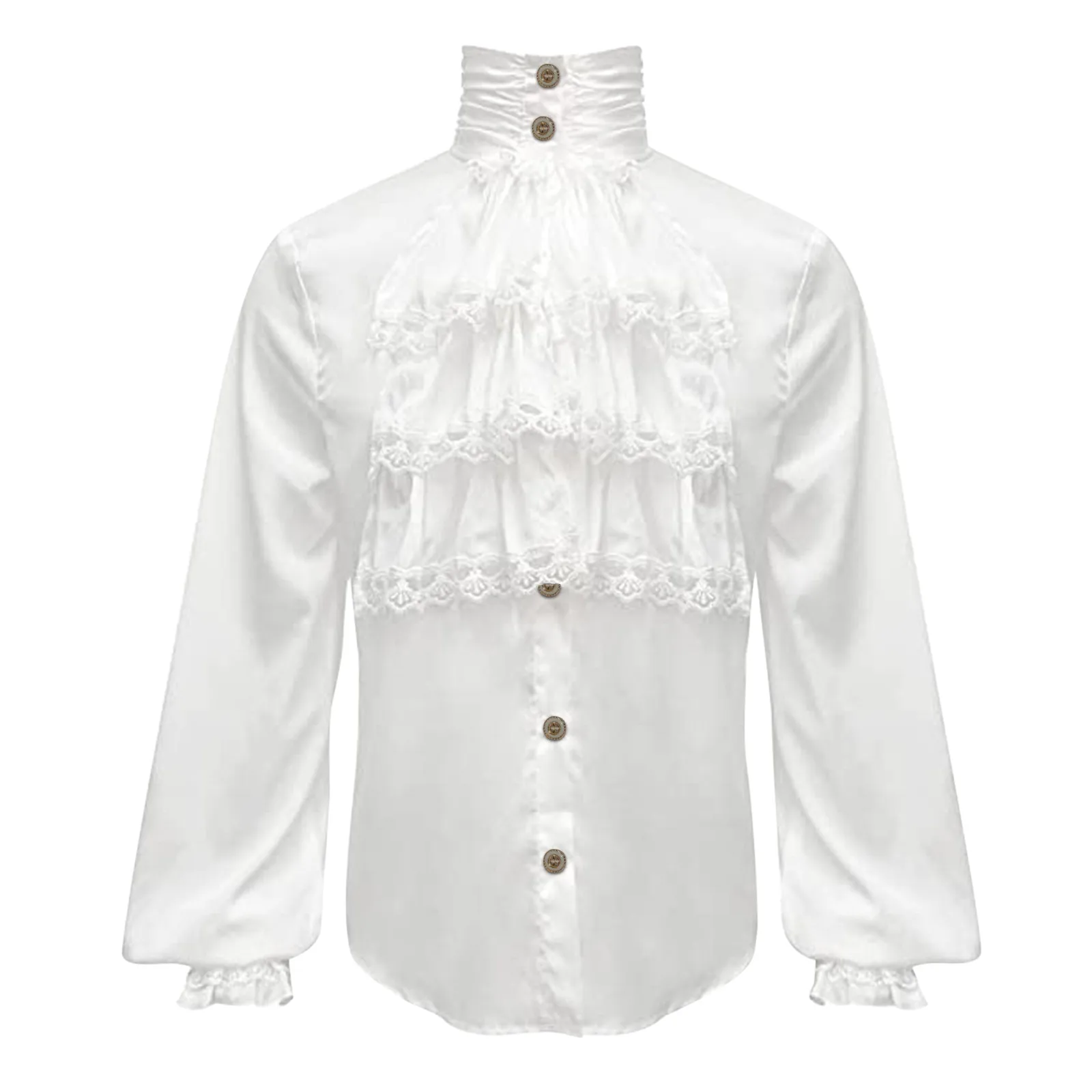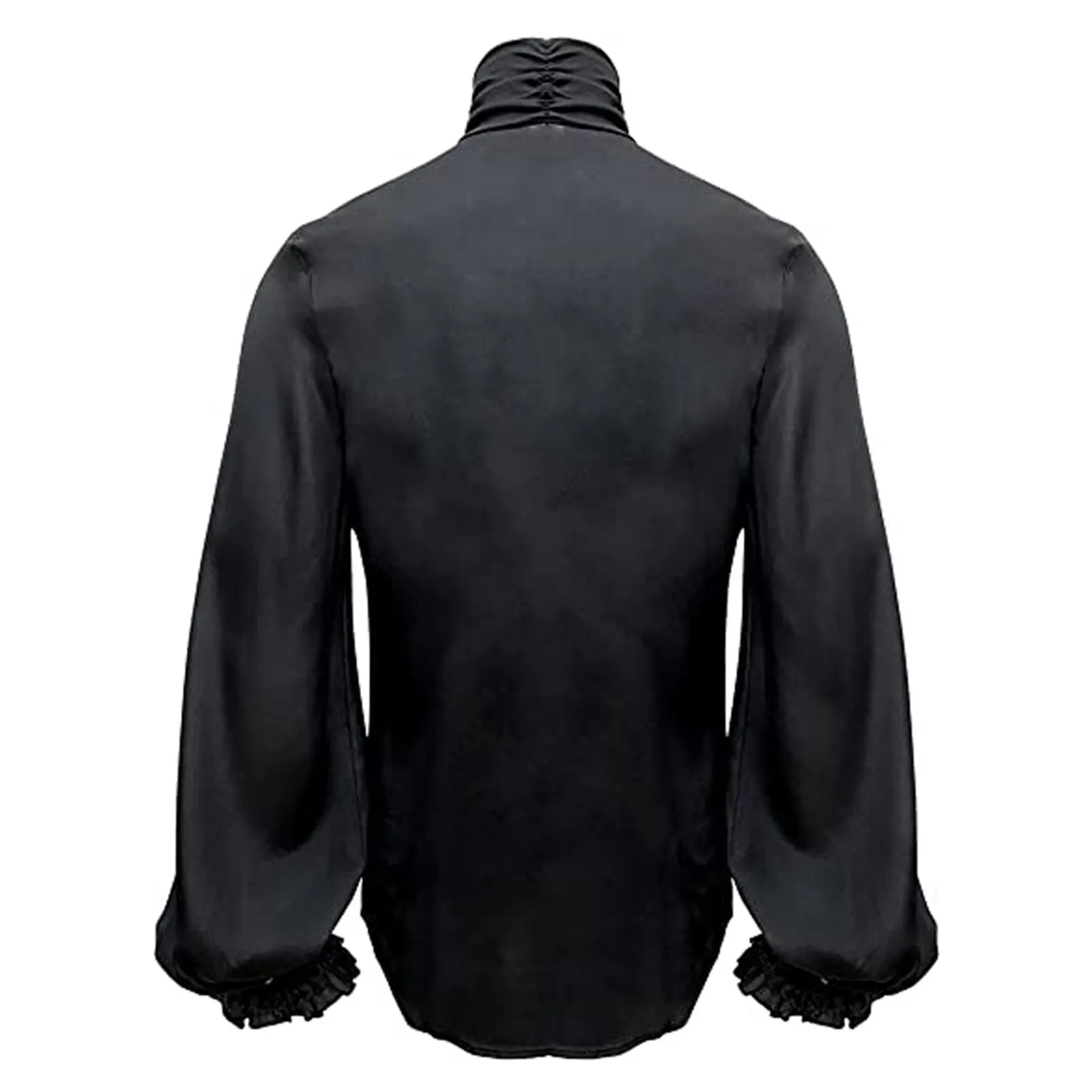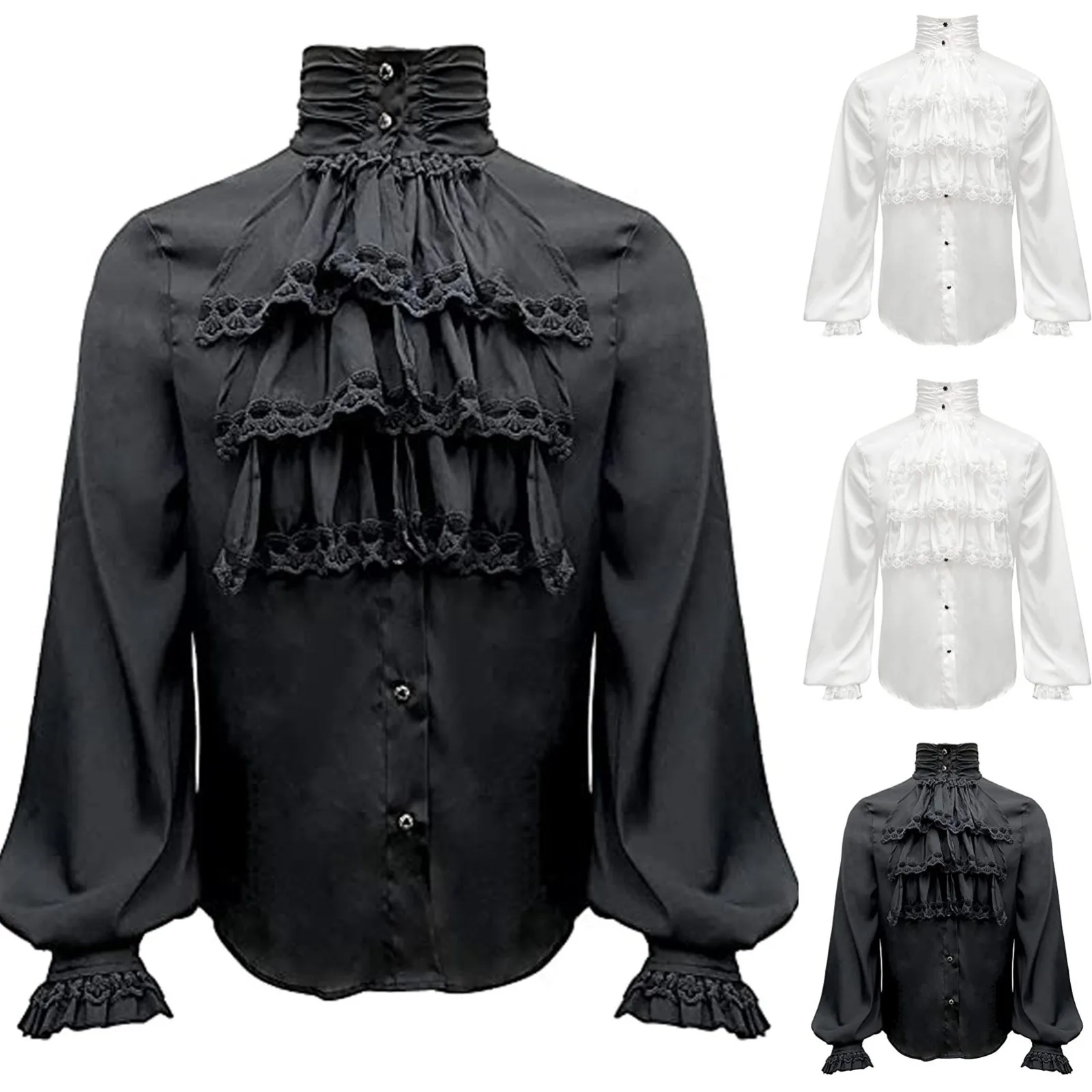 Men Steampunk Shirt Vintage Prince Medieval Renaissance Blouse Male White Black Turtleneck Tops Victorian Cosplay Costumes