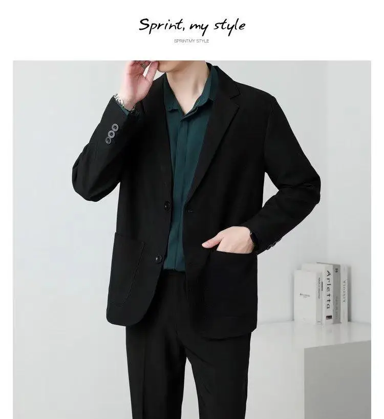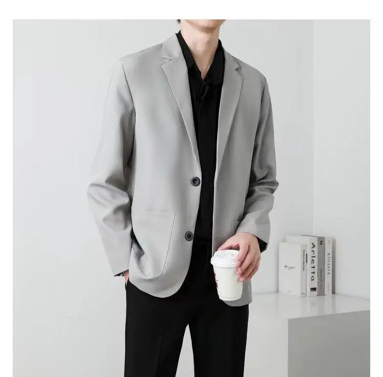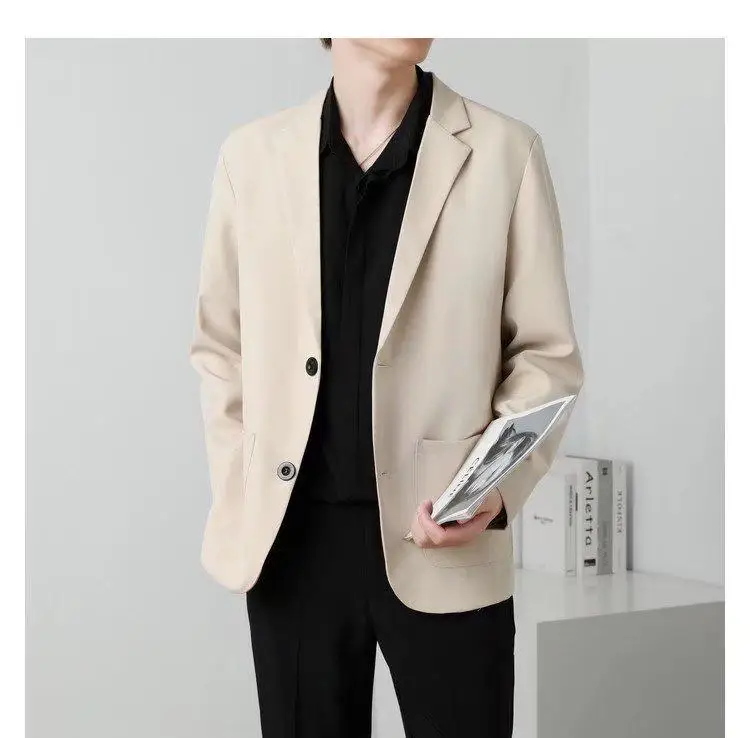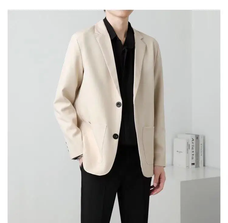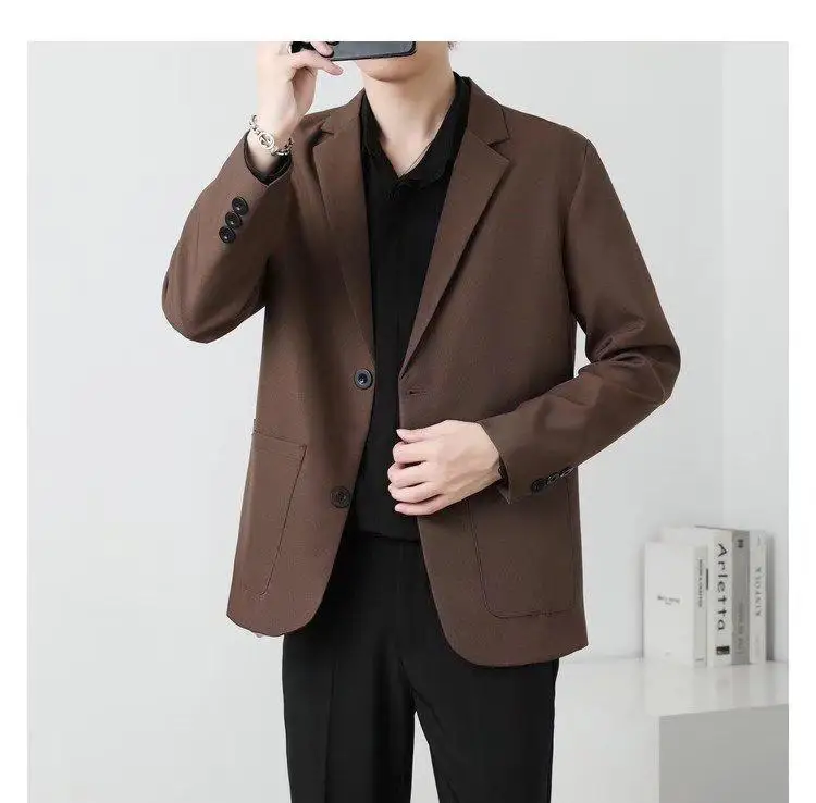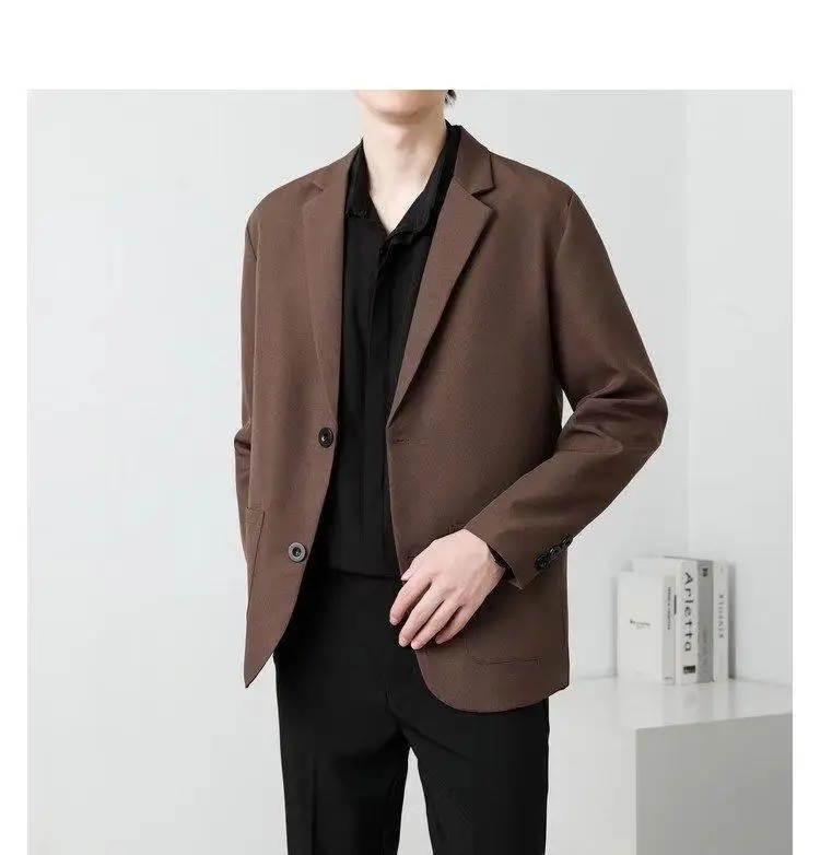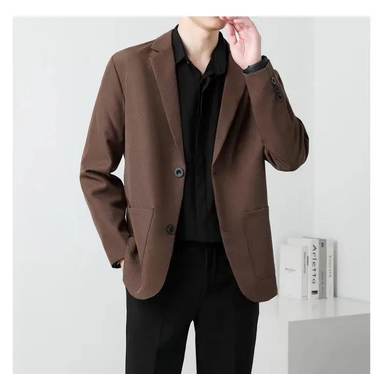 Men Suit Jackets Blazer Coat Slim Fit Smart Casual Autumn New Fashion Clothing Two Buttons Solid Color Korean Black/Khaki/Coffee