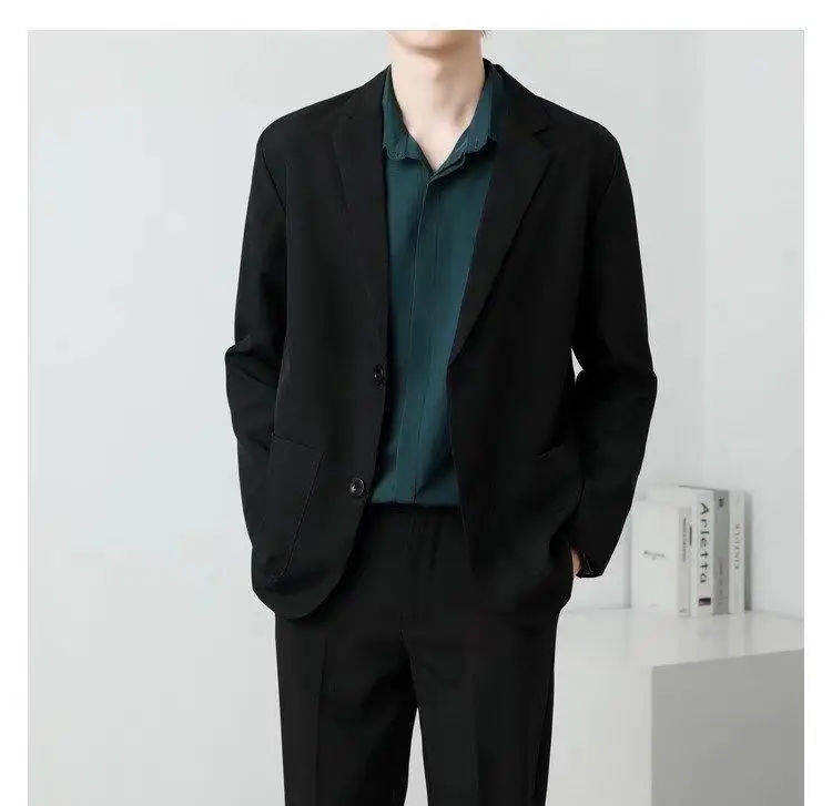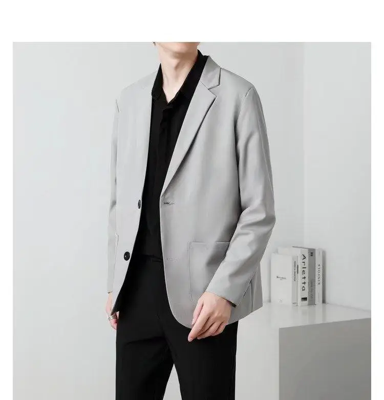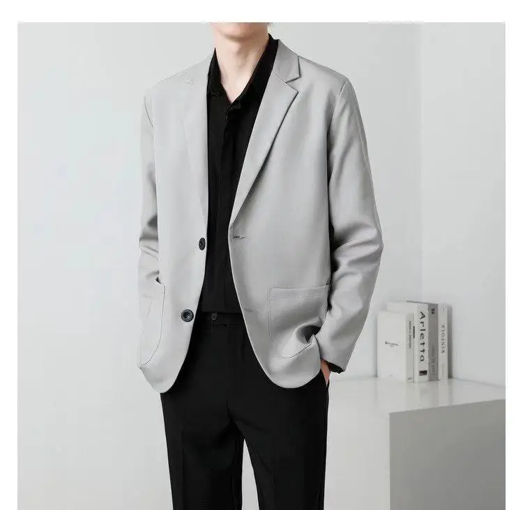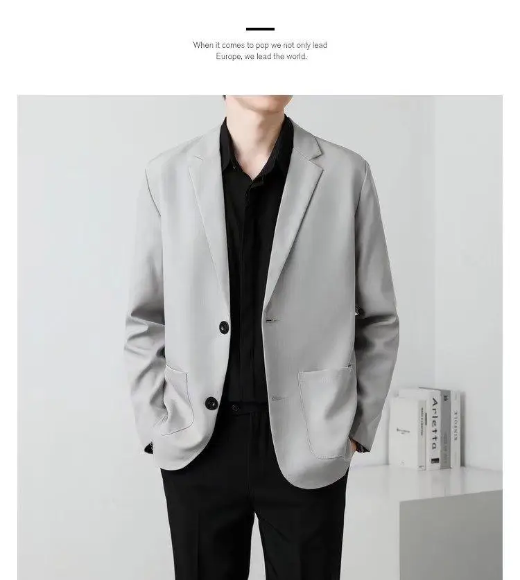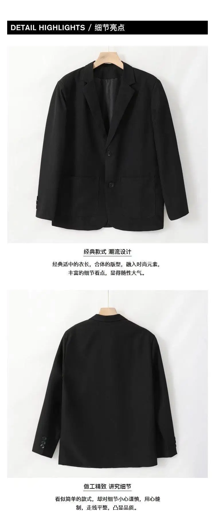 Men Suit Jackets Blazer Coat Slim Fit Smart Casual Autumn New Fashion Clothing Two Buttons Solid Color Korean Black/Khaki/Coffee