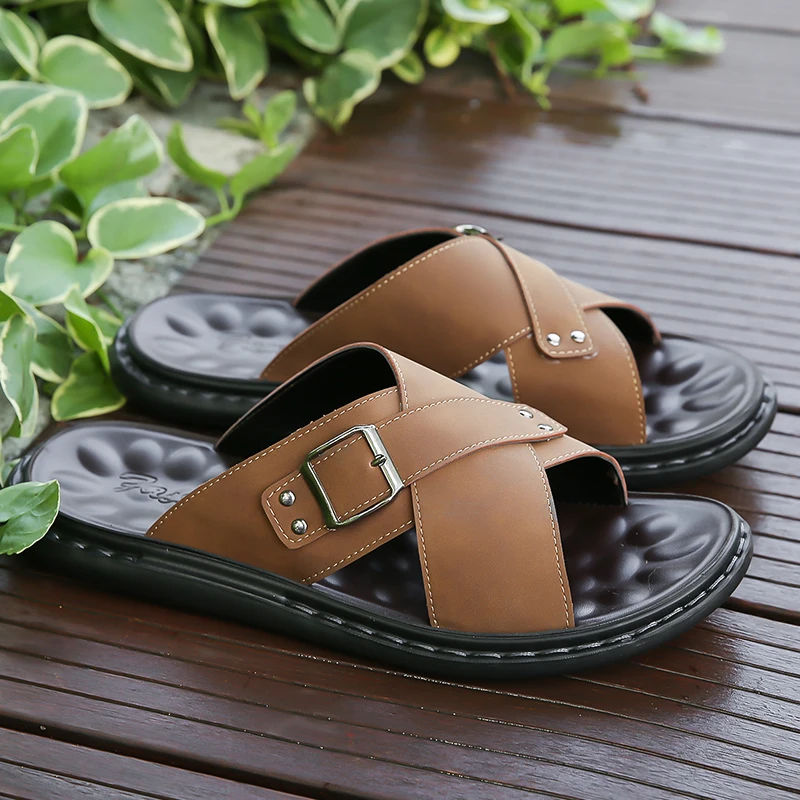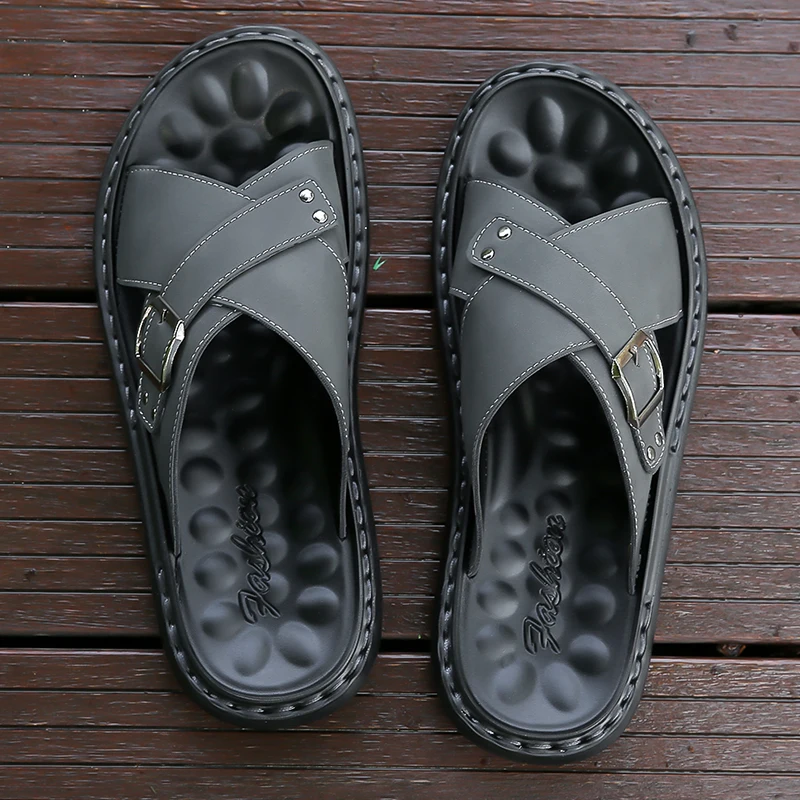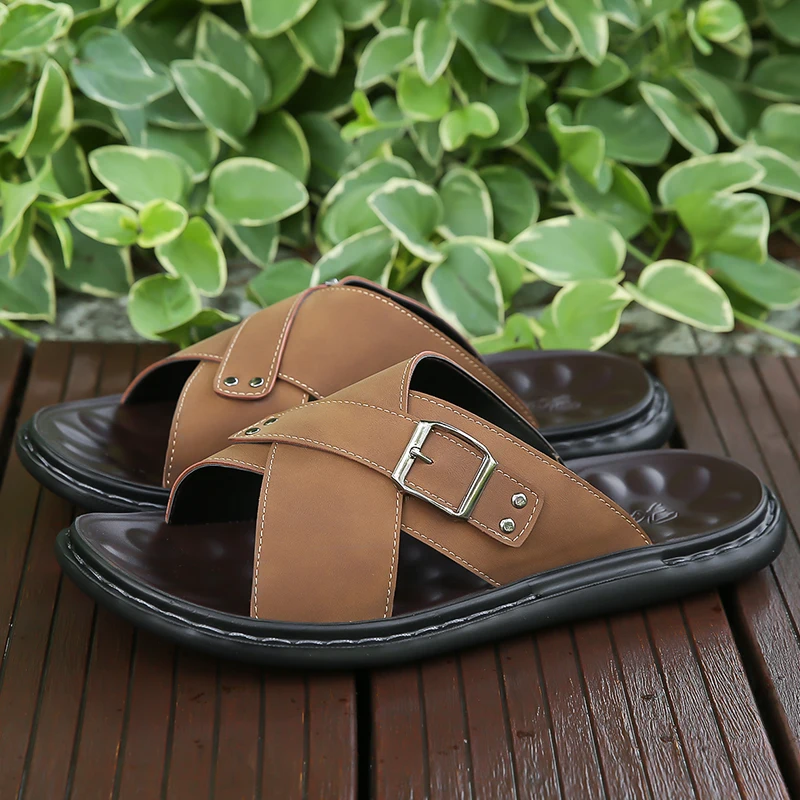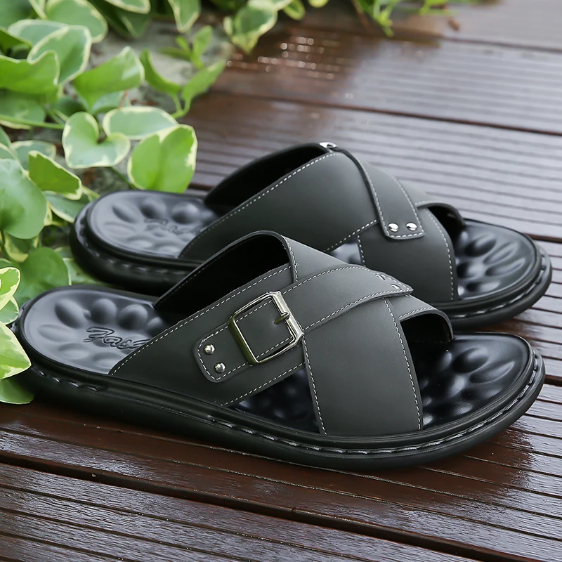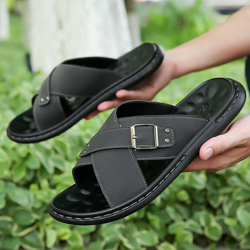 Men Summer Stylish Slippers Open-toe Soft-Soled Shoes Simple Solid Color Half Drag Slip-On Shoes Outdoor Man Comfortable Sandals