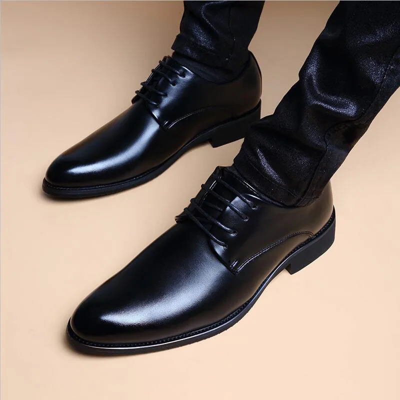 Men Wedding Leather Business Men's Dress Pointed Casual Youth British Style Inner Heightening Spring 2024 New Arrivals Shoes