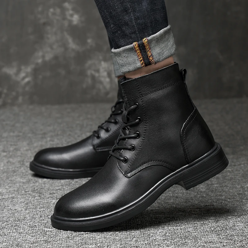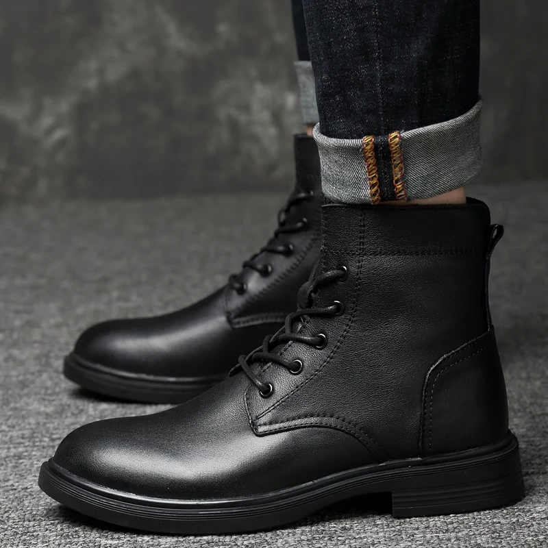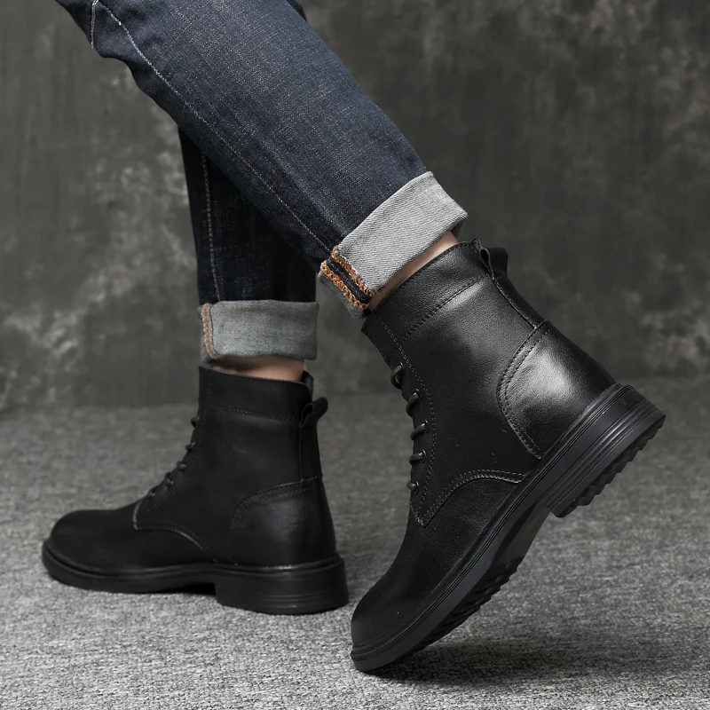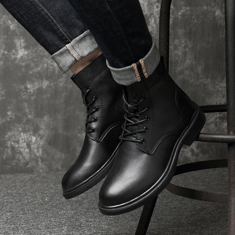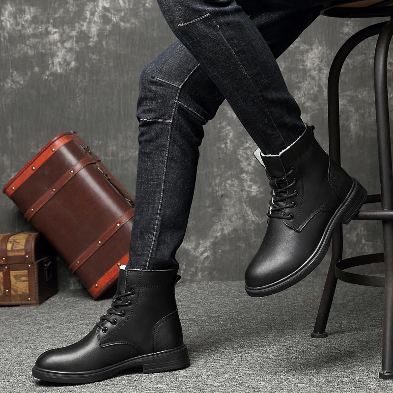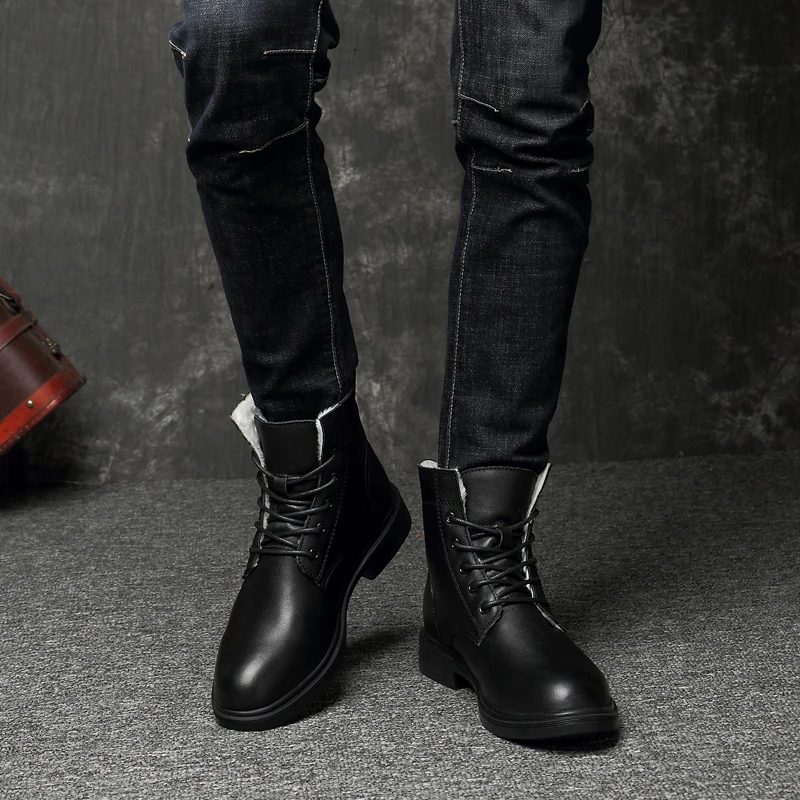 Men Winter Shoes Formal Dress Boots Black Motorcycle Boots Warm Oxford Ankle Men's Boots Genuine Leather High Quality Big Siz 50
