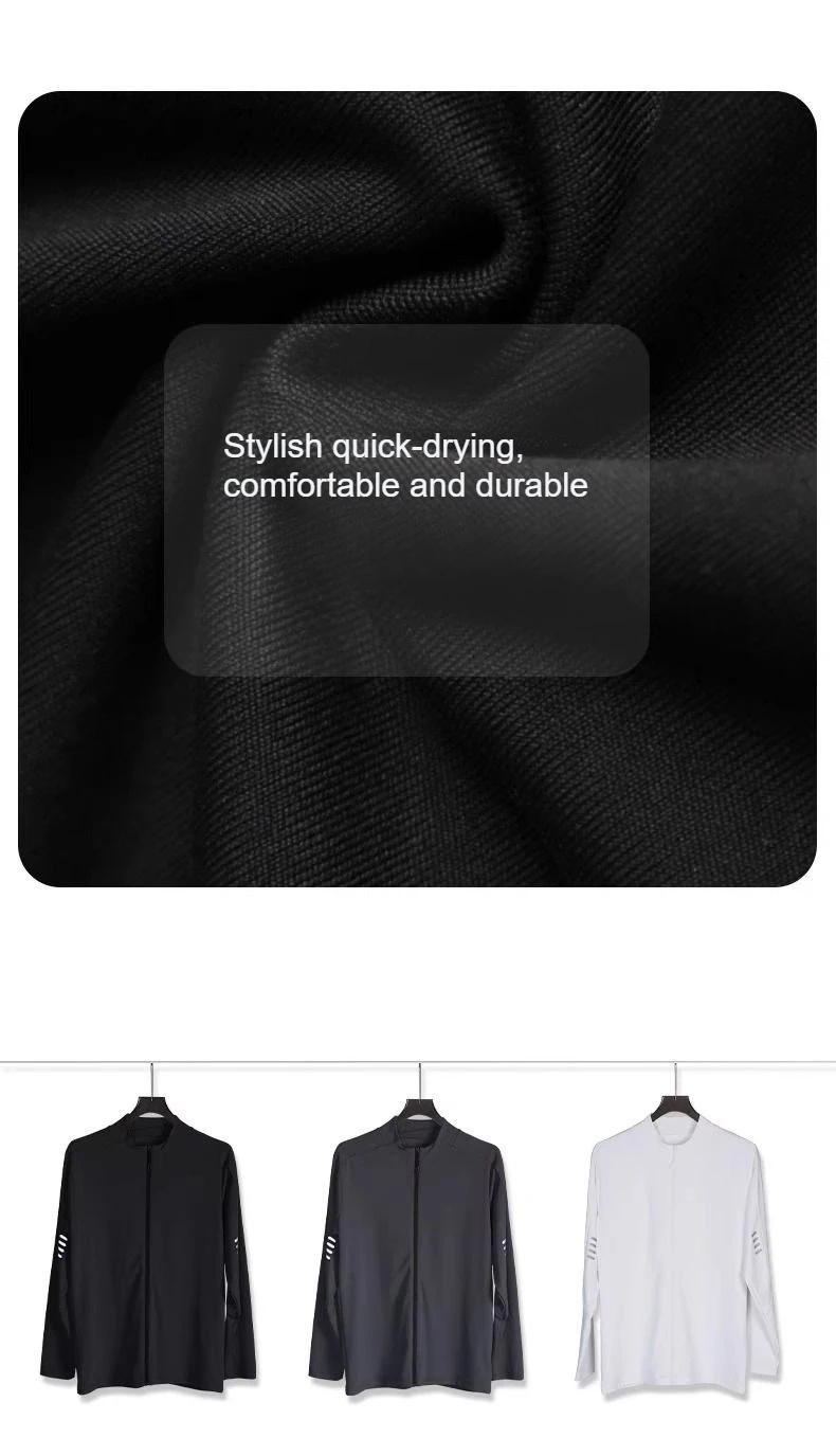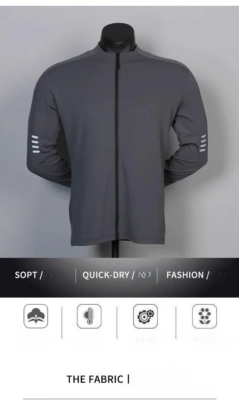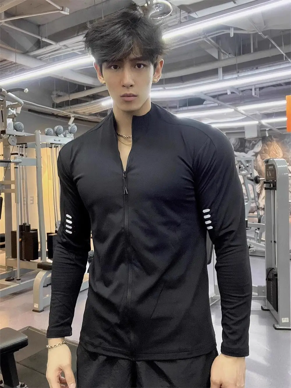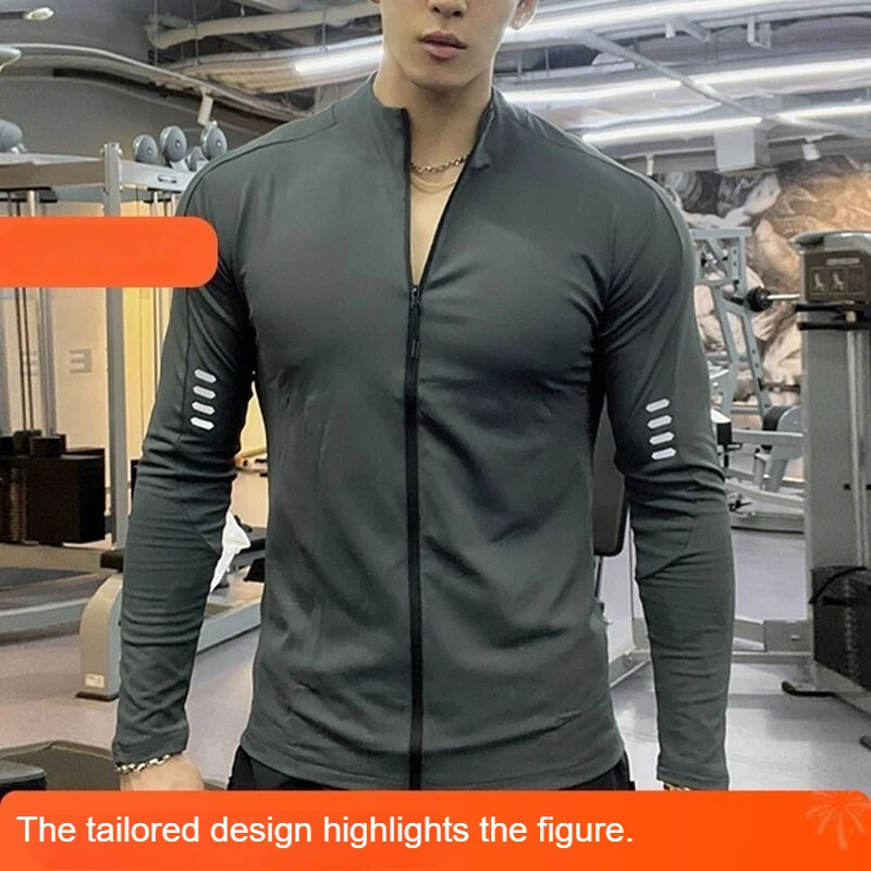 Our men's outerwear is designed with an American - style fitness concept. It is a long - sleeve jacket suitable for various sports activities.