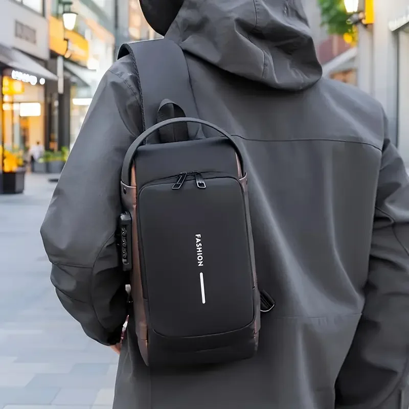 Men'S Anti-Theft Password Lock Chest Bag,Durable Oxford Fabric, Adjustable Shoulder Strap, Crossbody Style with Secure Lock