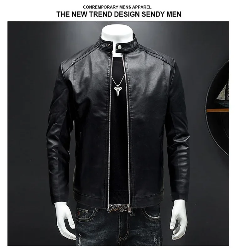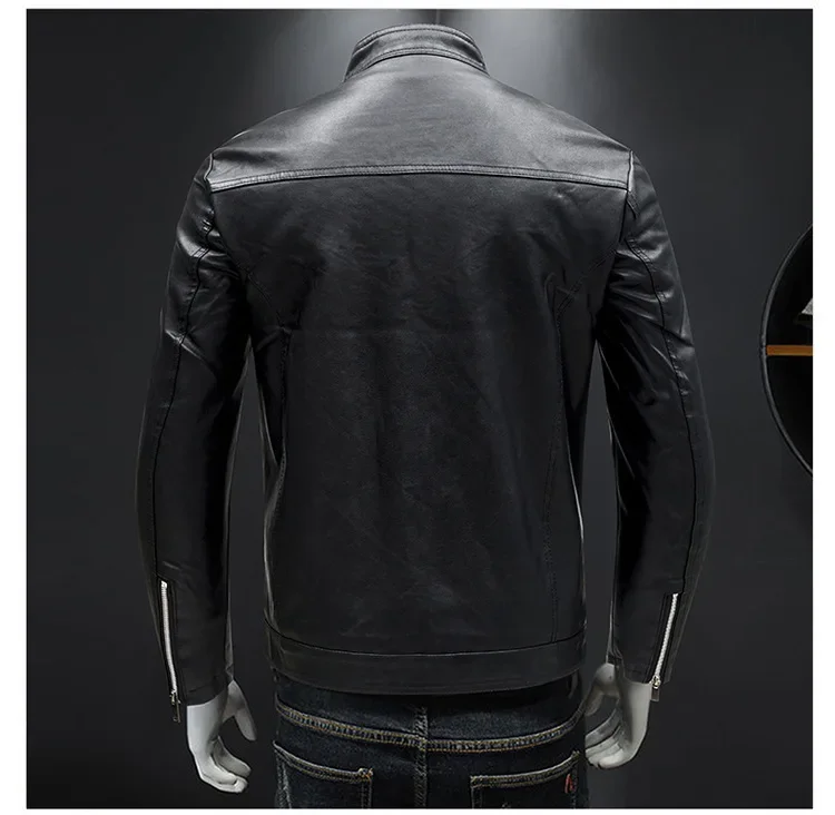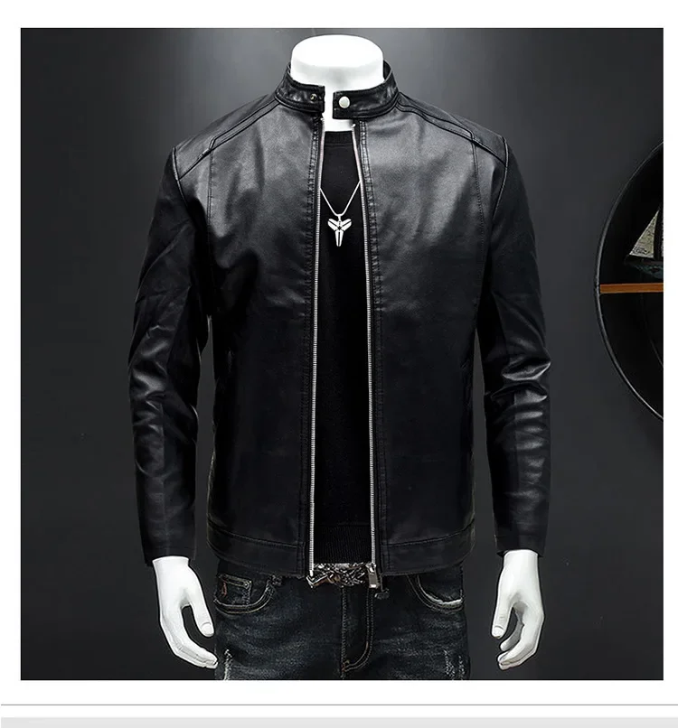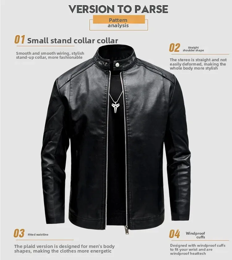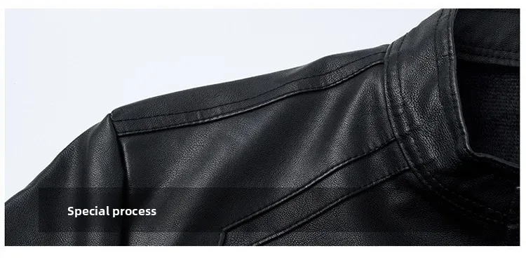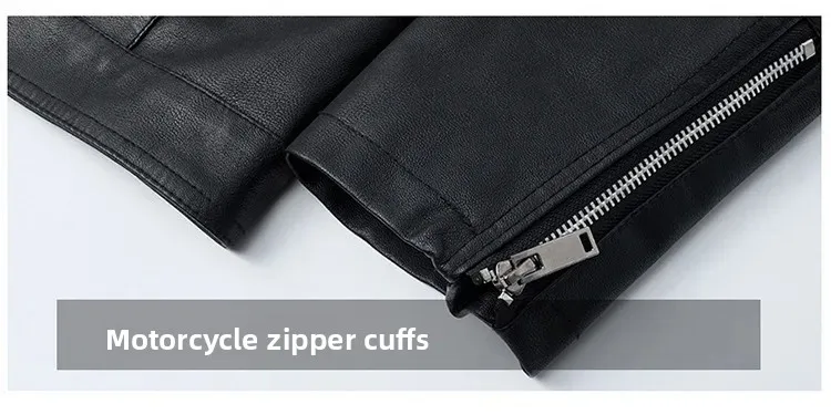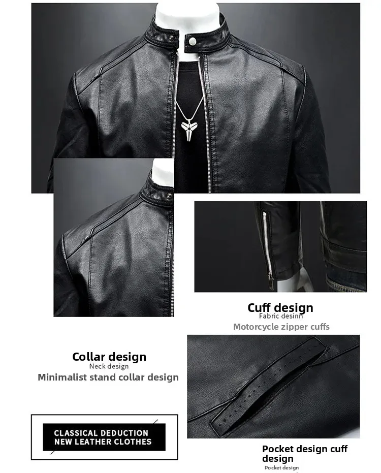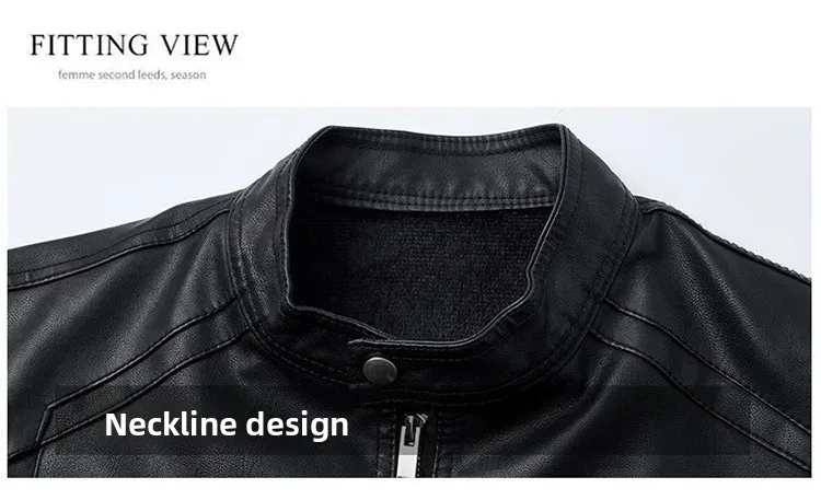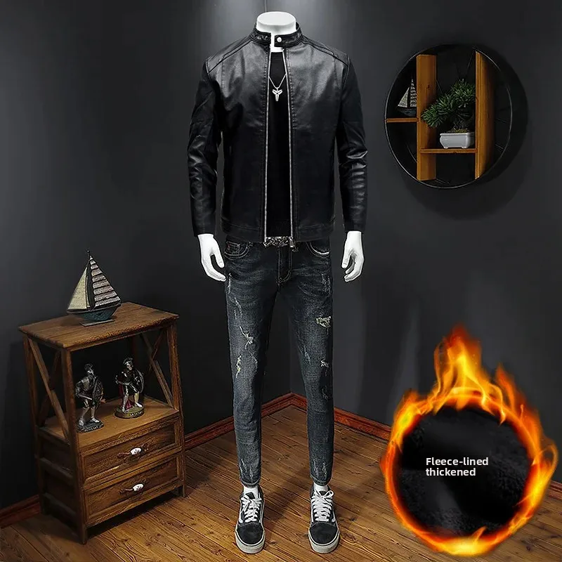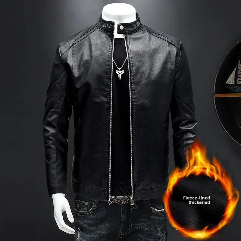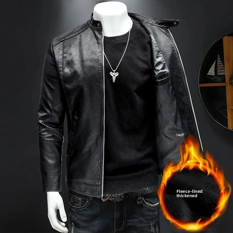 Men's Biker Leather Jacket Autumn Winter Thickened Fleece Casual Versatile Slim Fit Large Size PU Leather Coat