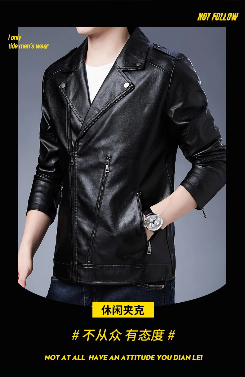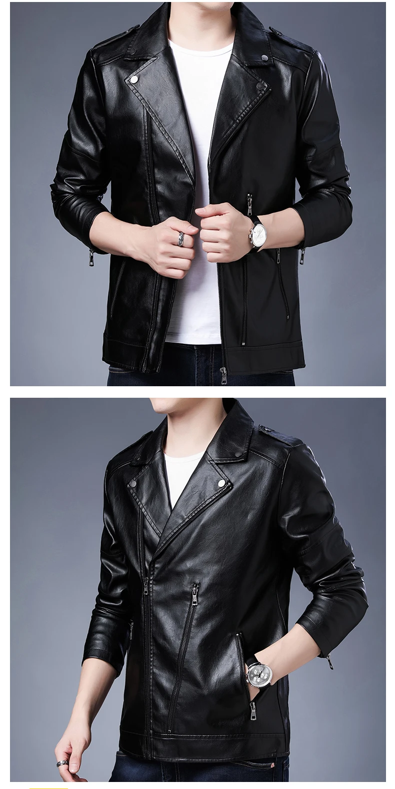 Men's Black PU Leather Jacket Men's Zipper Leather Jacket Vintage Men's Leather Jacket Men's Leather Motorcycle Jacket