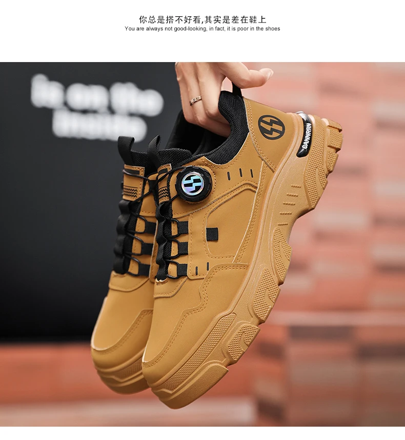 Men's boots autumn and winter new rotating shoelaces fashion casual boots youth outdoor boots anti slip soft sole workwear boots