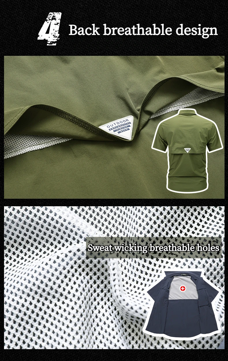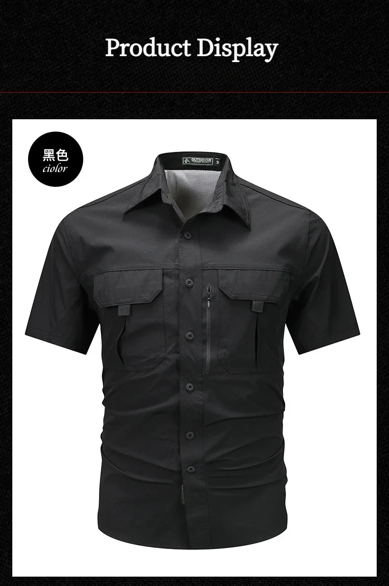 Men's Breathable Short Sleeve Shirt Men Casual Tactical Cargo Shirts Summer Quick Dry Hiking Work Shirts for Man Short-sleeved