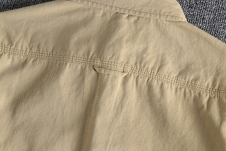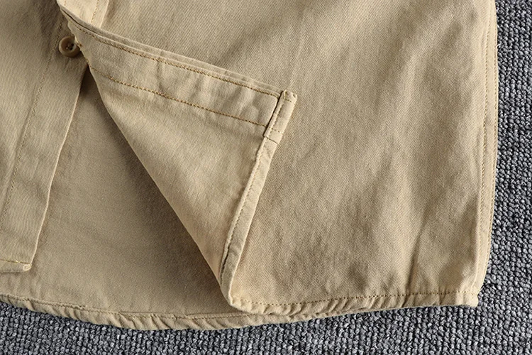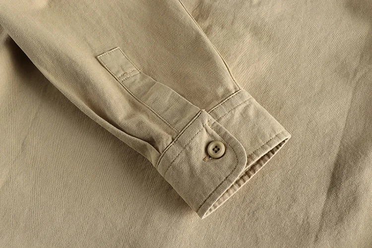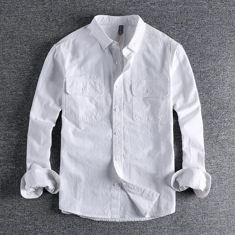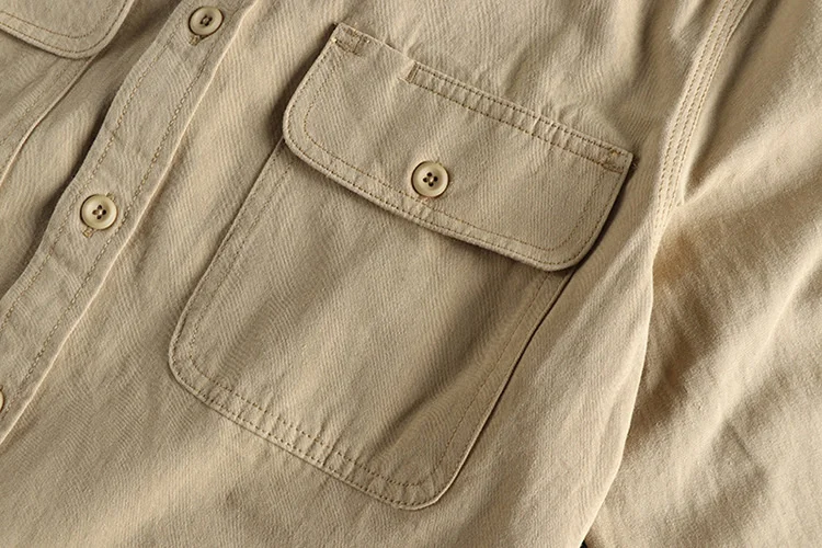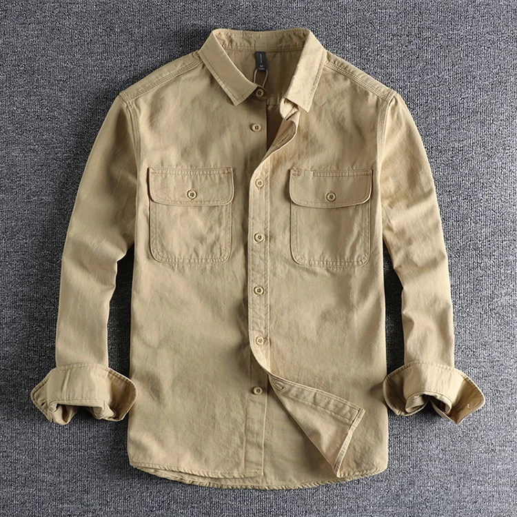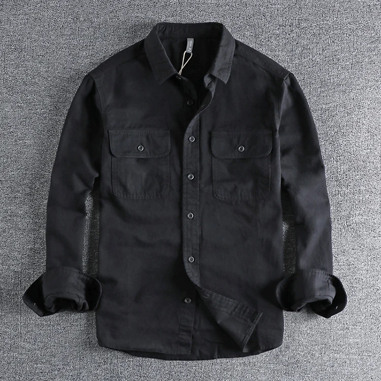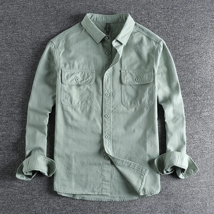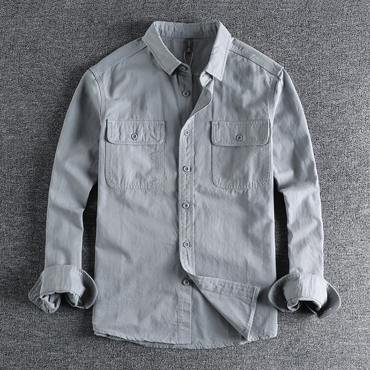 Men's British Simple Solid Color Long Sleeved Shirt Wash Woven Twill Cotton Versatile Ameikeji Fashion Male Cargo Work Shirt