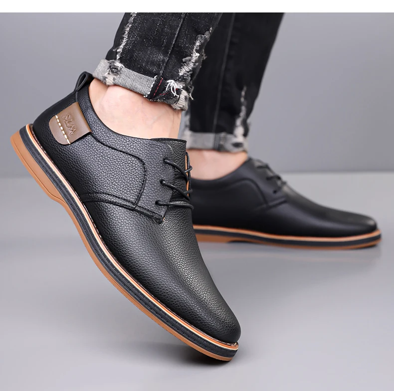 Men's Casual Business Leather Shoes Men Fashion Lace-up Derby Shoe Mens Light Comfortable Outdoor Driving Flats