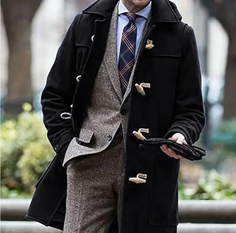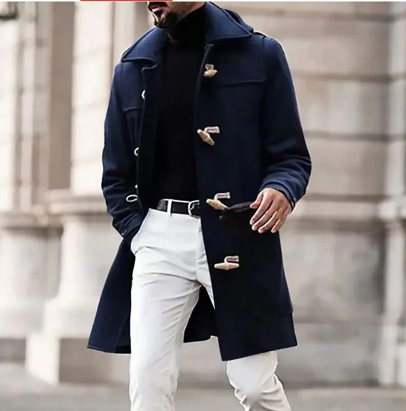 Men's Casual Single-breasted Lapel Solid Color Overcoat in Mid-to-long Style for Autumn and Winter, Trendy Coat Jacket S-XXXL