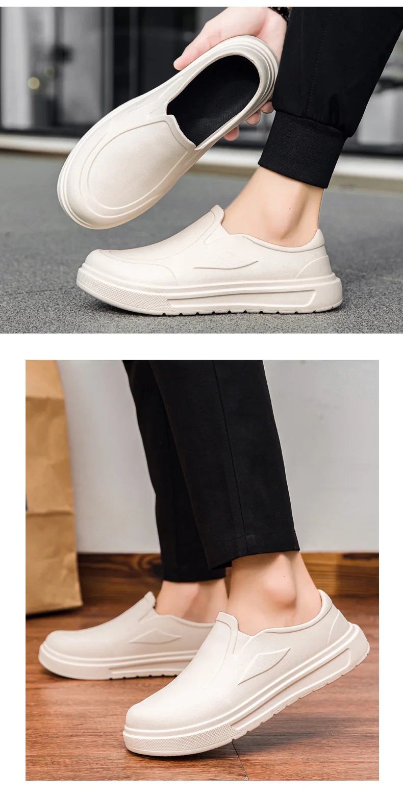 Men's Chef Shoes Anti Slip Oil Resistant Dirt Resistant Work Shoes Quick Drying Thick Soled Rain Shoes Large Size Breath Clogs