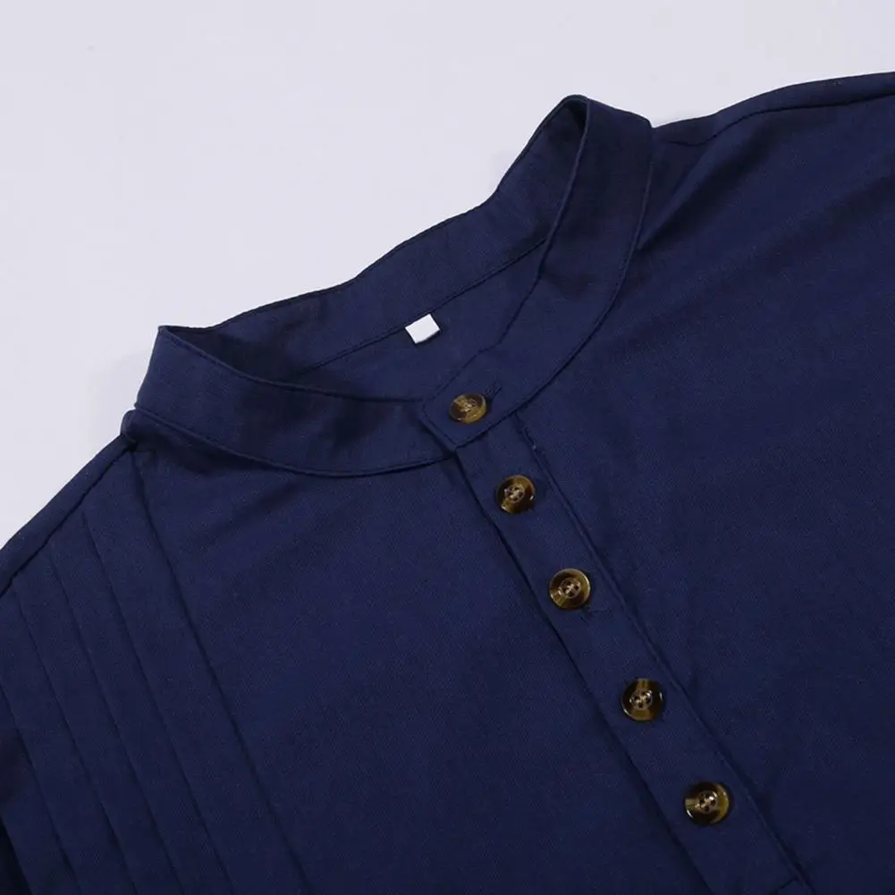 Introducing our Men's Robe, a versatile addition to your wardrobe. This Kaftan-style robe features a solid color design with a button-up round neck and pleated decorative shoulder detail. Crafted from high-quality soft cotton and linen fabric, it is lightweight, breathable, and sweat-absorbing, making it perfect for summer or changing seasons. The excellent elasticity ensures comfort and freedom of movement all day long.