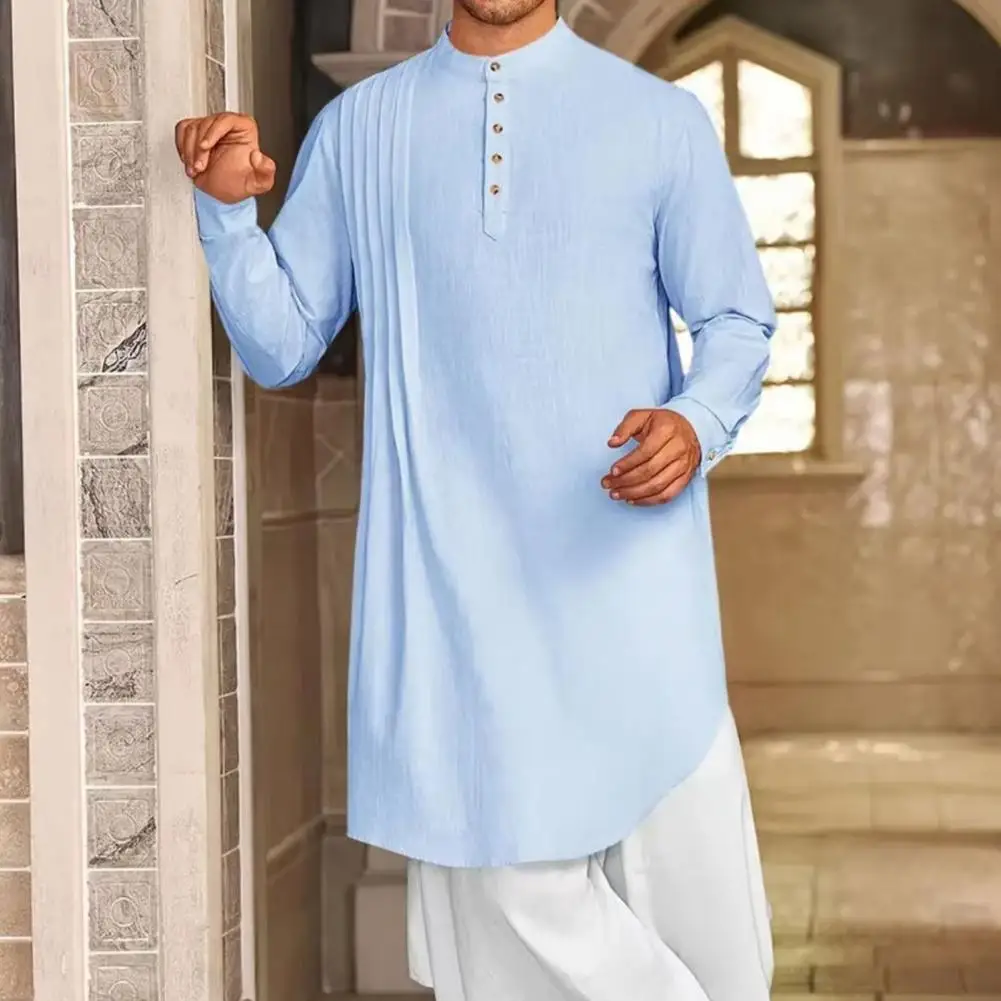 Features: Pleated Decorative Design, Arabic Clothing, Button-up Collar