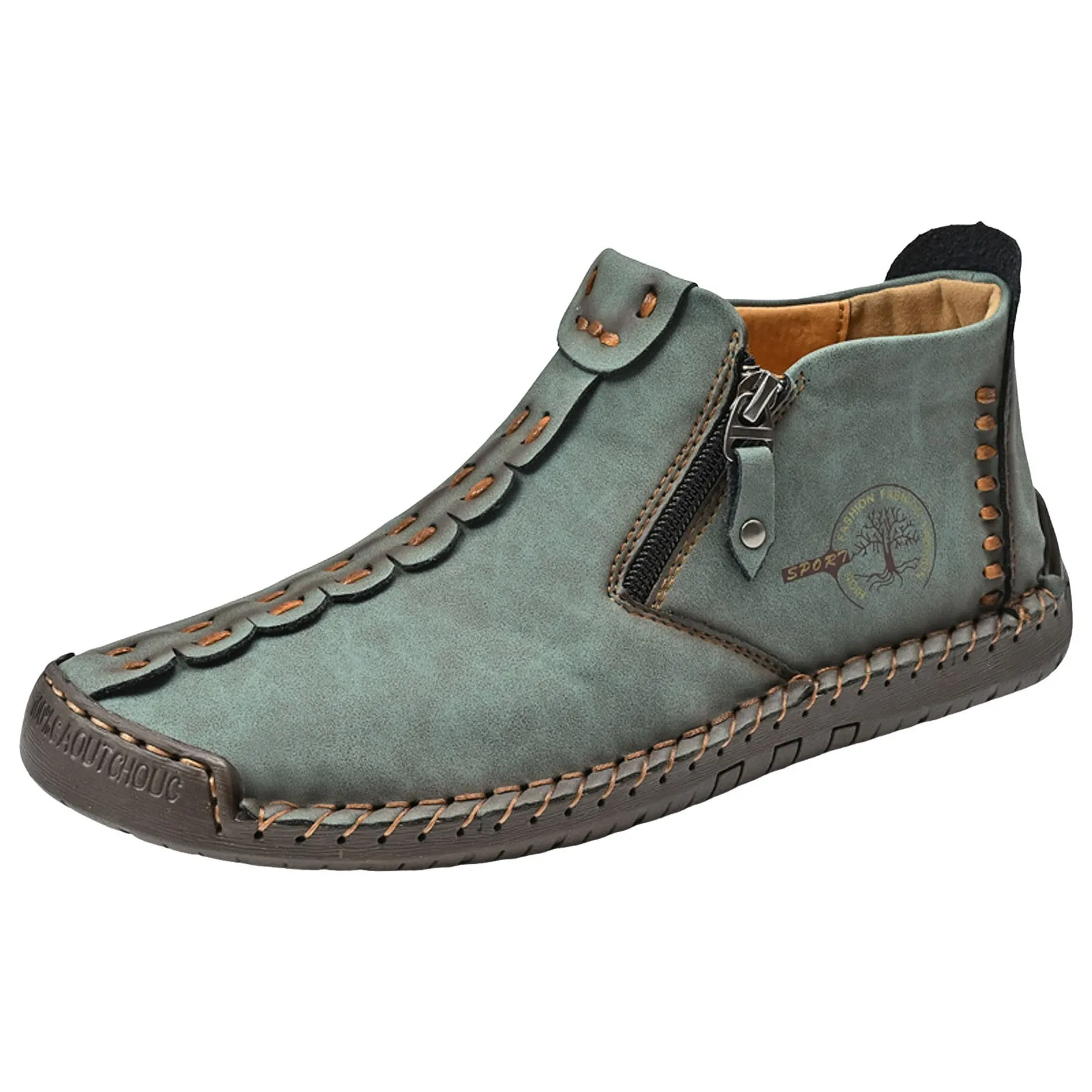 Men'S Fall And Winter Outdoor Padded Warm Leather Stitching Zipper Fashion Low Ankle Boots Composite Slip On Work Boots Botas