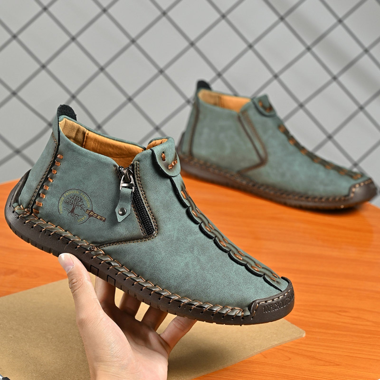 Men's Fall And Winter Outdoor Padded Warm Leather Stitching Zipper Fashion Low Ankle Boots