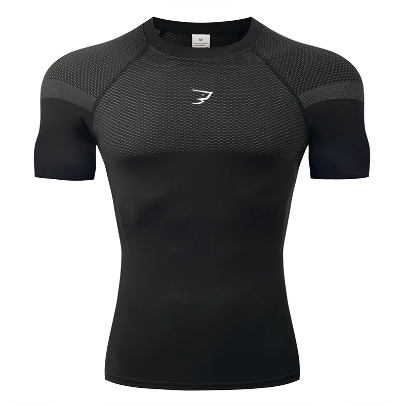 Men's Gym Compression Running Shirt Tight Short Sleeve Sports T-Shirt Fitness Training Workout Breathable Homme Athletic Shirt