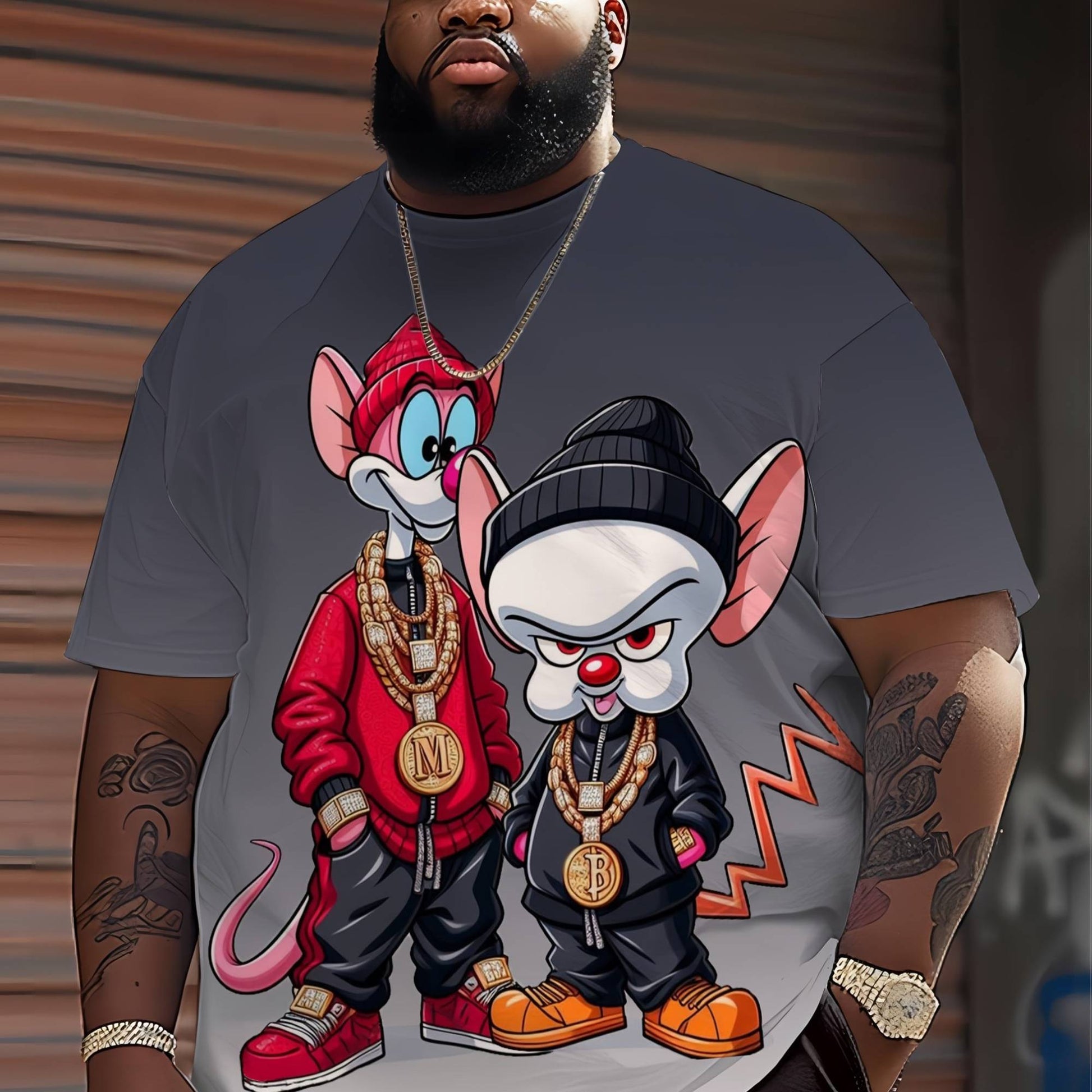 Men's Hip-Hop Cartoon T-Shirt - Casual,Crew Neck,Short Sleeve,100% Polyester,Regular Fit,Summer Streetwear for Running & Daily