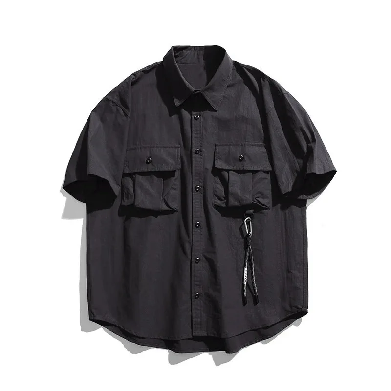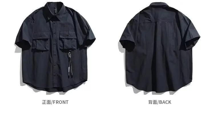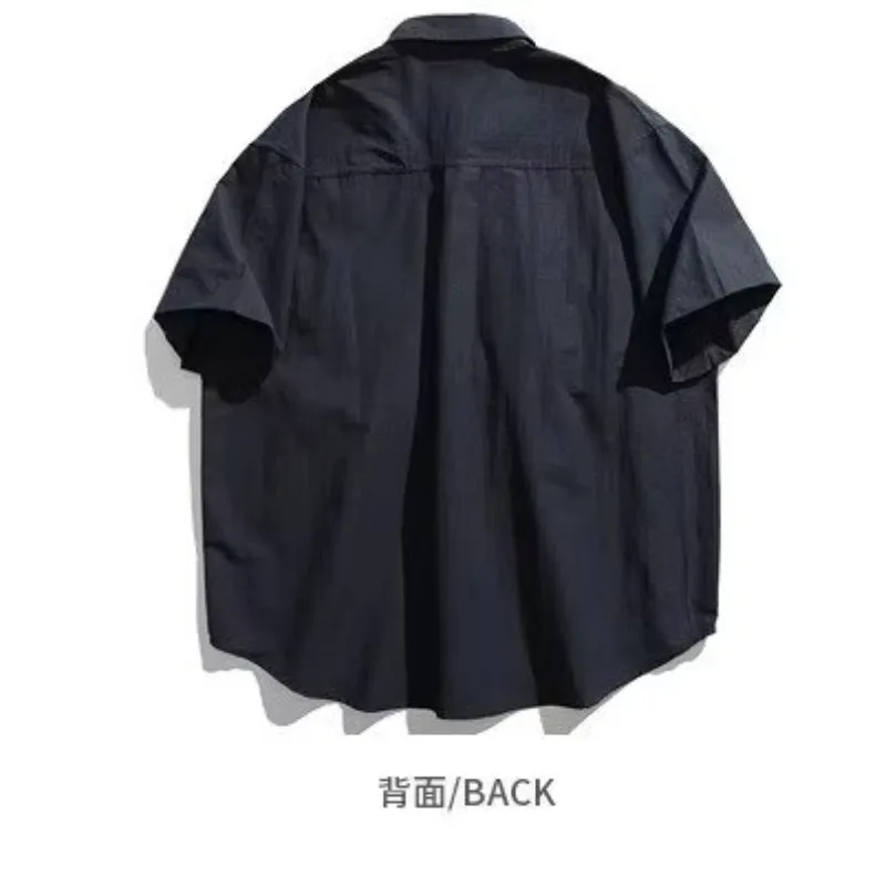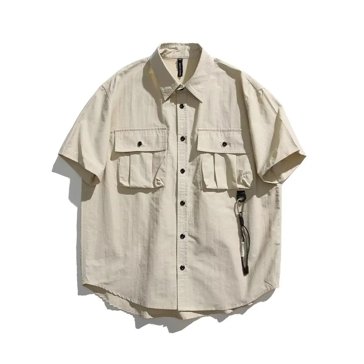 Japanese Style Cargo Shirts Men's Vintage Laple Short Sleeve Shirts 2025 Spring Summer Loose Casual Shirt Jacket Male Streetwear