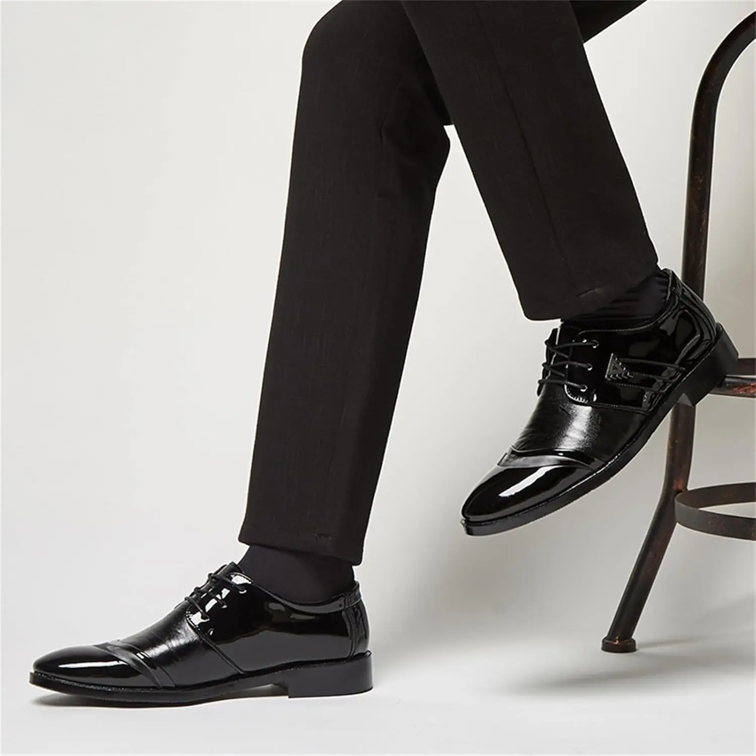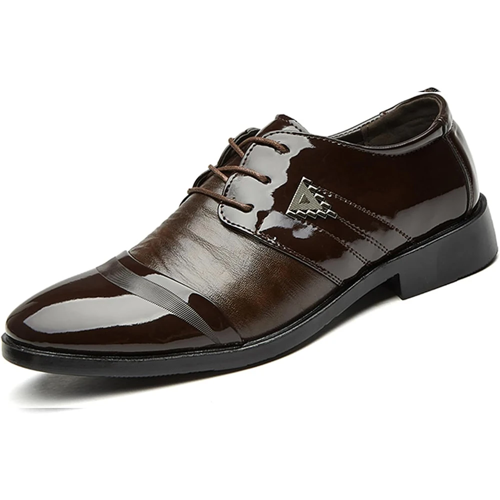 Mens Lace Up Dress Shoes Modern Formal Business Casual Office Suit Tuxedo Patent Leather Oxford Shoes