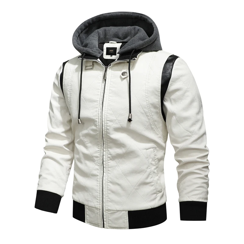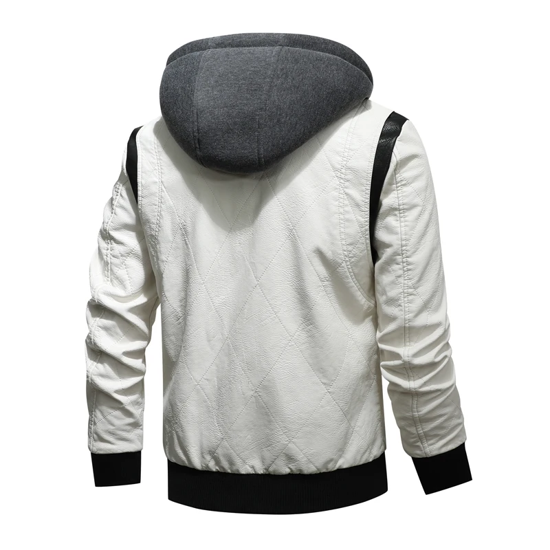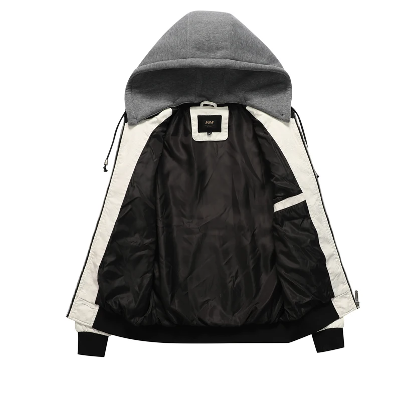 Men's Leather Bomber Jacket Windproof and rainproof Scorpion Embroidery Hooded Jacket PU Leather Winter, Drive