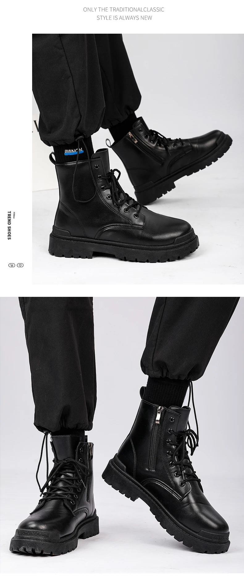 Men's Leather Boots Four Seasons Outdoor Casual Hiking Boots Retro Fashion Work Boots Thick Bottom Ankle Boots Anti-slip Fleece