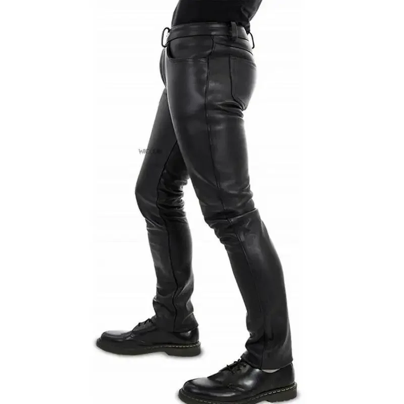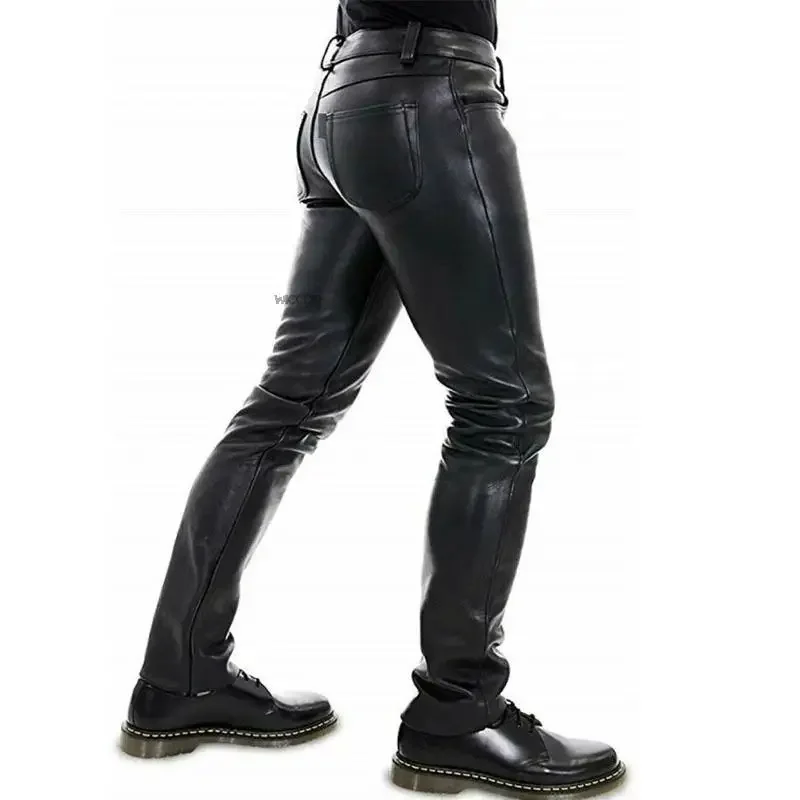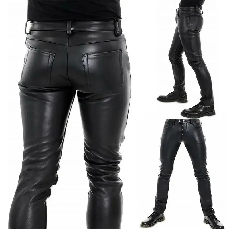 Men's Leather Pants 2022 New Solid Color PU Leather Motorcycle Pants Elastic Leisure Punk Style Slim Fit Full Length Trousers