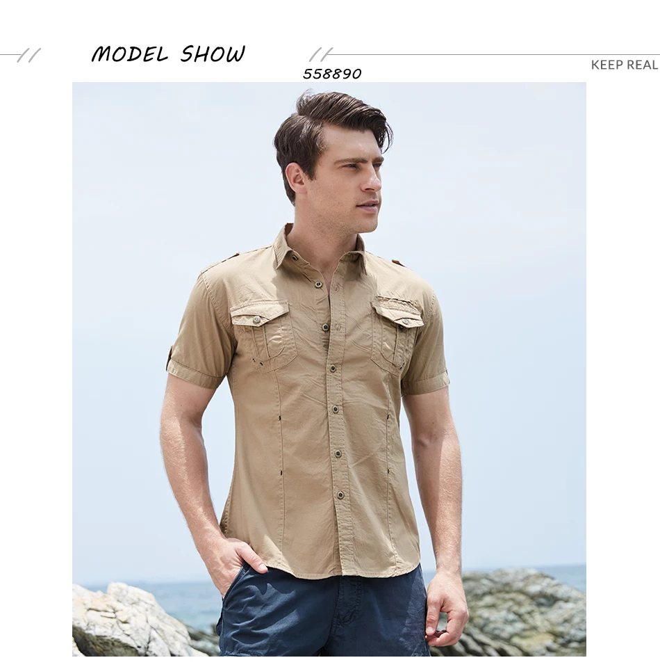Men's Shirt 2024 New Men Cargo Shirt Fashion Casual Shirt Summer Style 100% Cotton Solid Mens Casual Shirt Plus Size S-3XL 55888